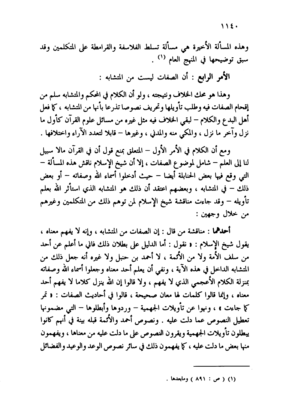الأمر الرابع: أن الصفات ليست من المتشابه: