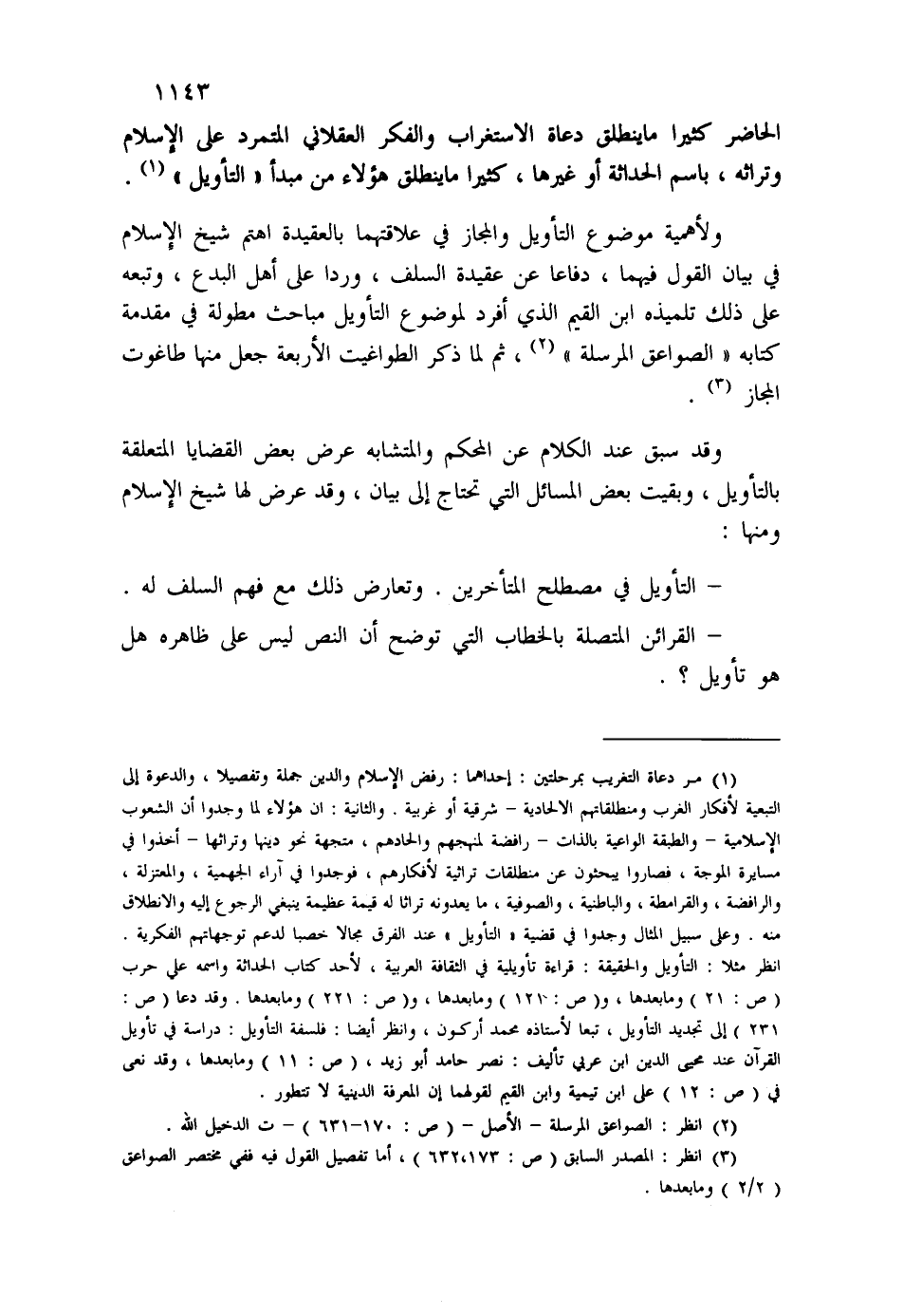 الحاضر كثيرا ما ينطلق دعاة الاستغراب والفكر العقلاني المتمرد على الإسلام وتراثه، باسم الحداثة أو غيرها، كثيرا ما ينطلق هؤلاء من مبدأ "التأويل" (¬1) .