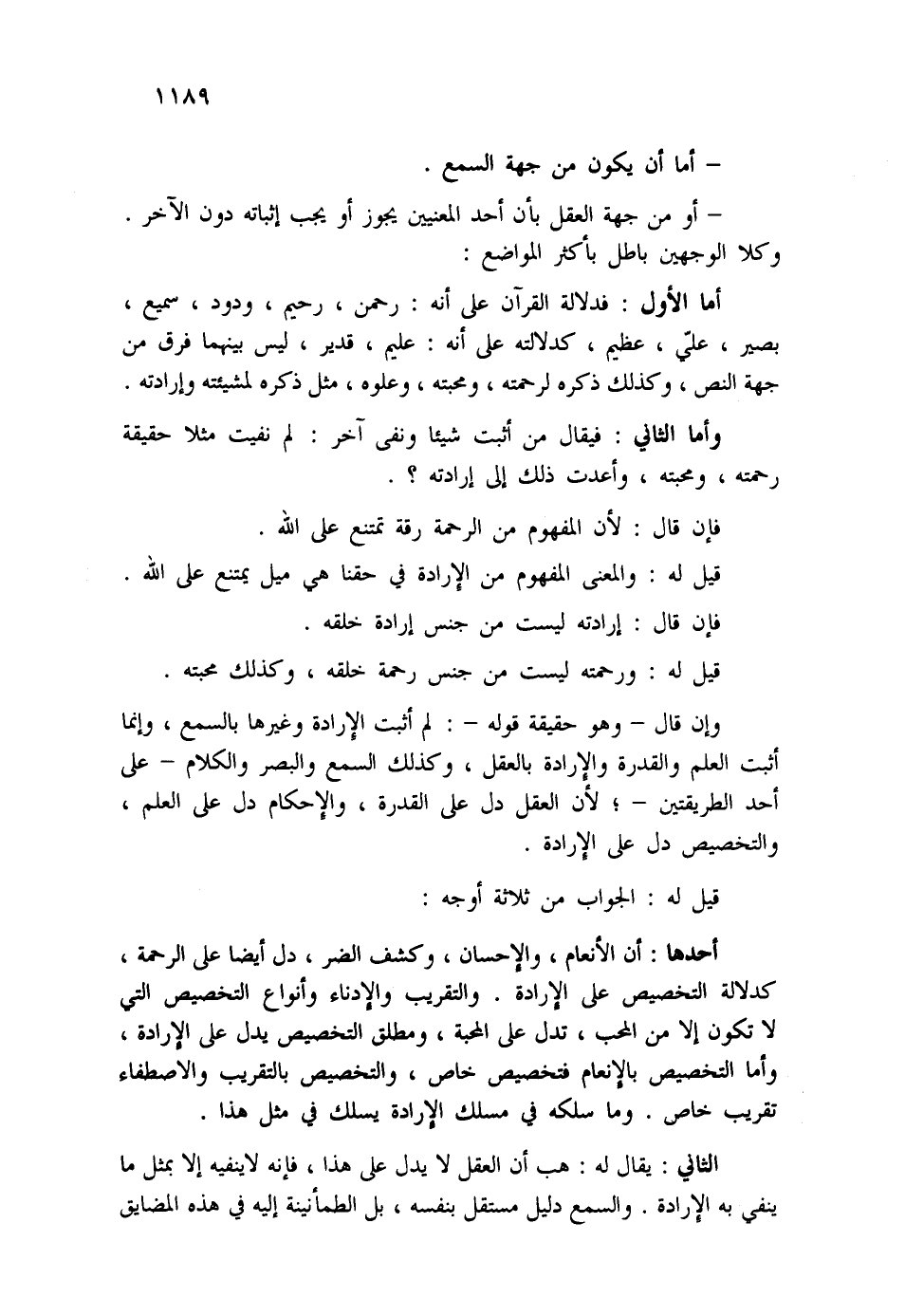 الثاني: يقال له: هب أن العقل لا يدل على هذا، فإنه لا ينفيه إلا بمثل ما ينفي به الإرادة. والسمع دليل مستقل بنفسه، بل الطمأنينة إليه في هذه المضايق