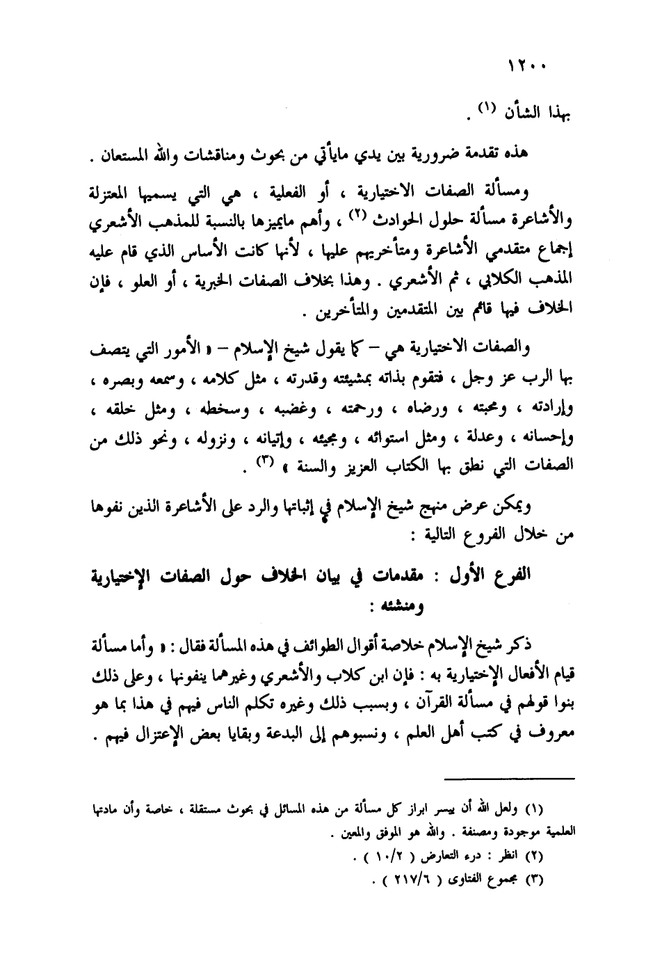 ويمكن عرض منهج شيخ الإسلام في إثباتها والرد على الأشاعرة الذين نفوها من خلال الفروع التالية: