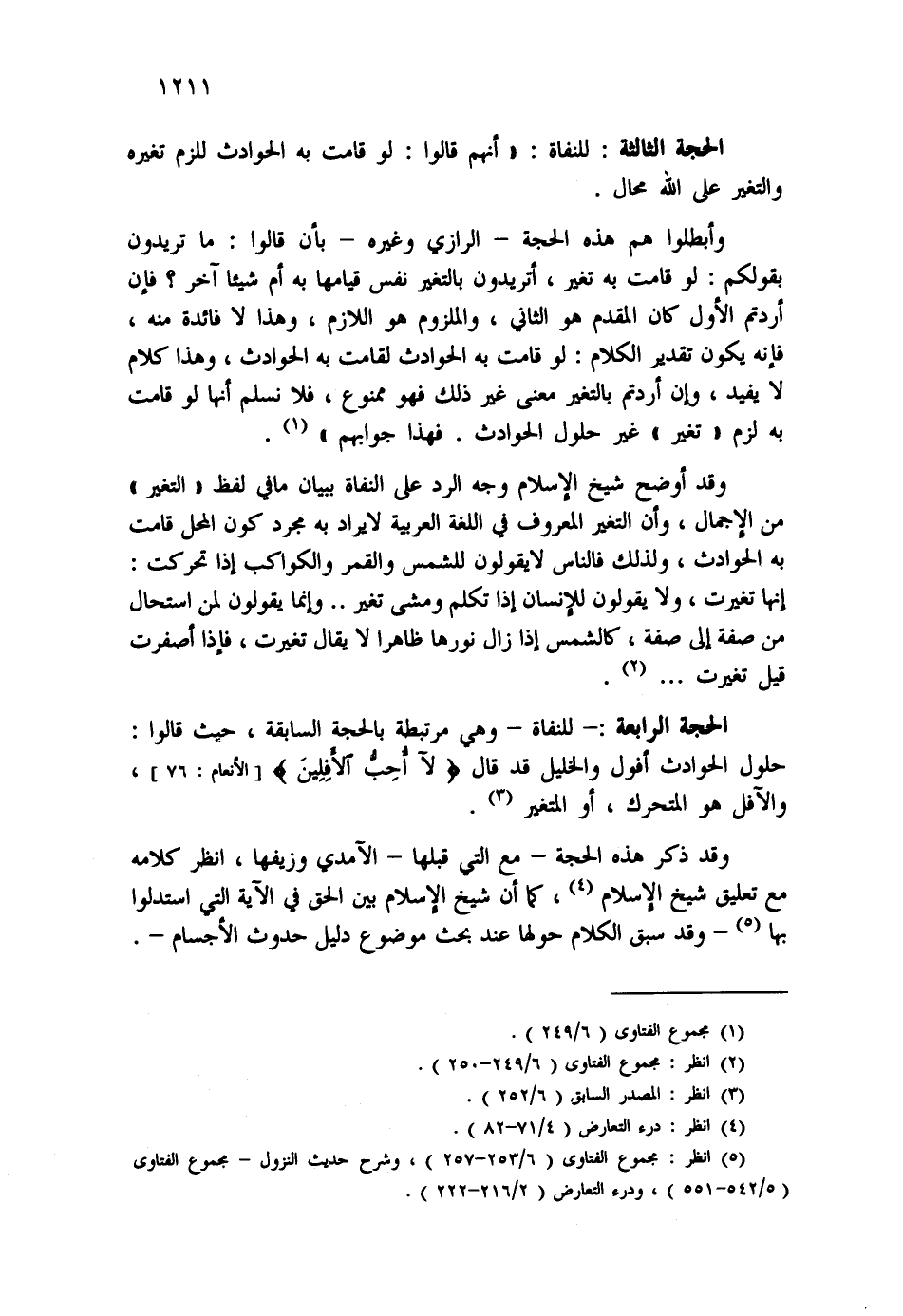 (¬5) انظر: مجموع الفتاوى (6/253-257) ، وشرح حديث النزول - مجموع الفتاوى (5/542-551) ، ودرء التعارض (2/216-222) .