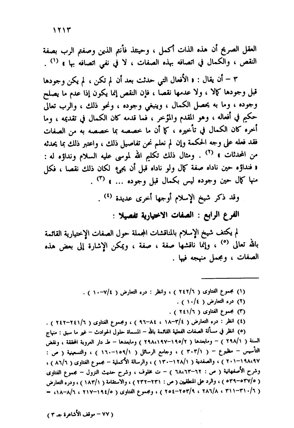 (¬4) انظر: درء التعارض (4/3-18، 84-96) ، ومجموع الفتاوى (6/241-242) .