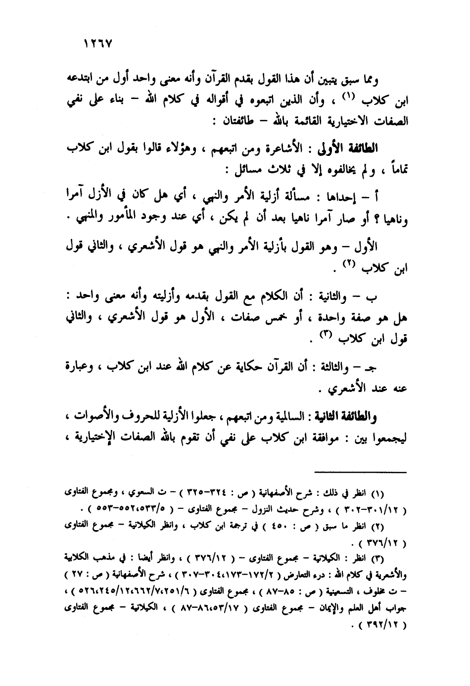 (¬3) انظر: الكيلانية - مجموع الفتاوى - (12/376) ، وانظر أيضاً: في مذهب الكلابية والأشعرية في كلام الله: درء التعارض (2/172-173، 304-307) ، شرح الأصفهانية (ص:27) ت مخلوف، التسعينية (ص:85-87) ، مجموع الفتاوى (6/251، 7/662، 12/245-526) ، جواب أهل العلم والإيمان - مجموع الفتاوى - (17/53، 86-87) ، الكيلانية - مجموع الفتاوى - (12/392) .
