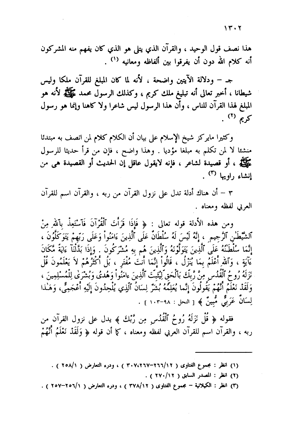 (¬3) انظر: الكيلانية مجموع الفتاوى (12/378) ، ودرء التعارض (1/256-257) .