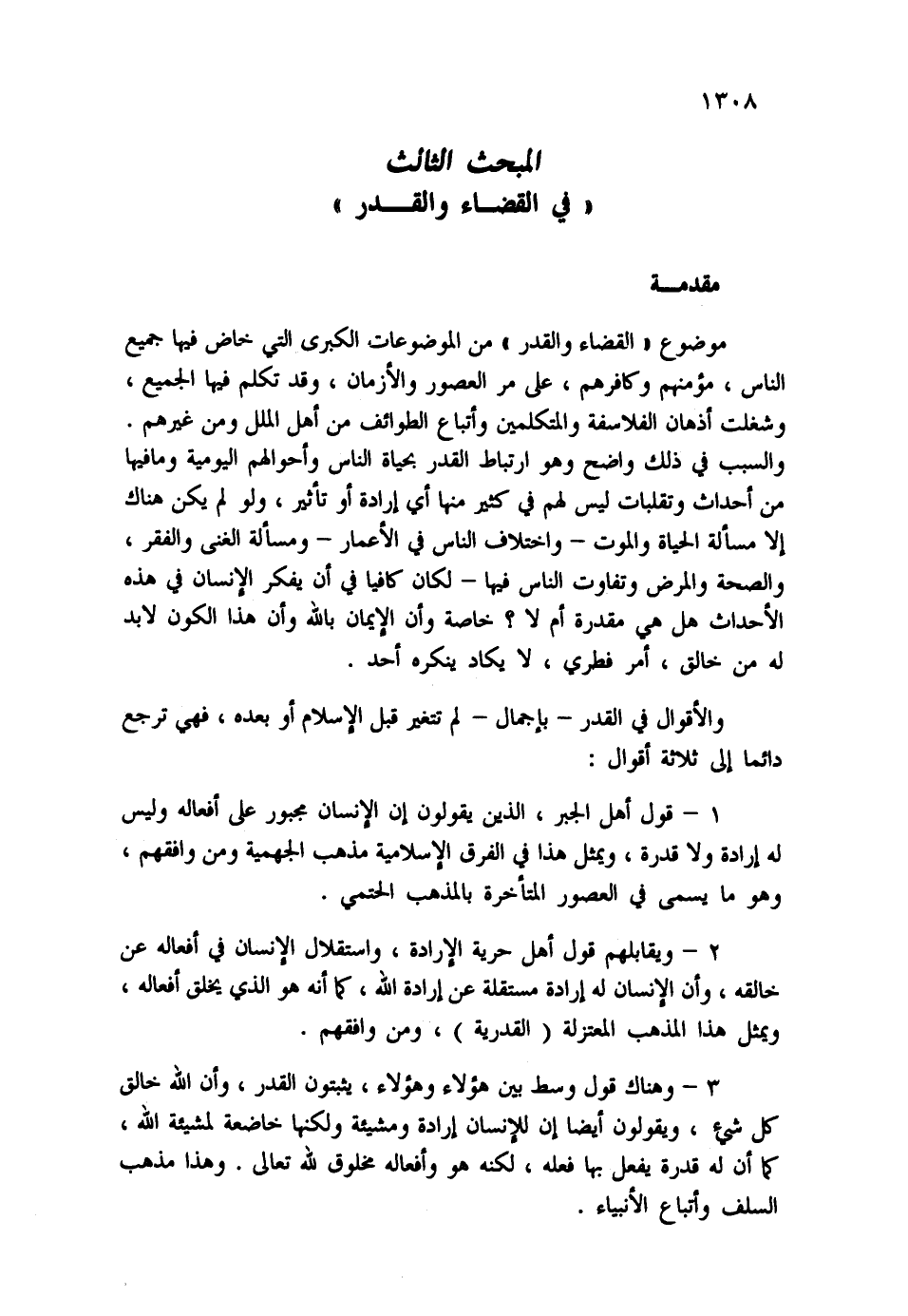 المبحث الثالث: في القضاء والقدر