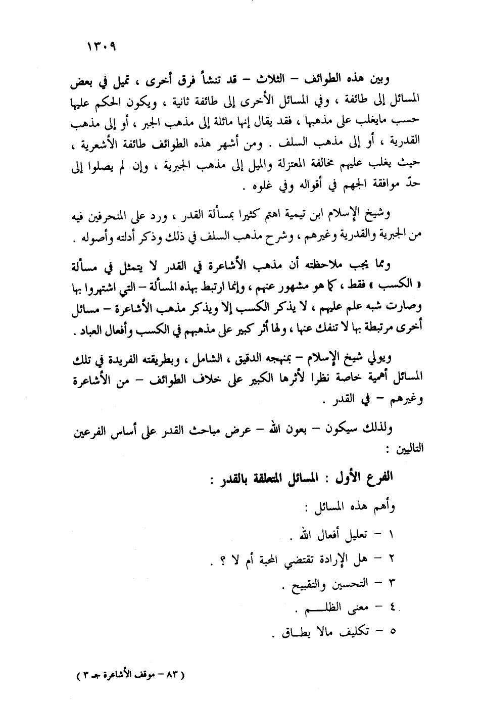 الفرع الأول: المسائل المتعلقة بالقدر: