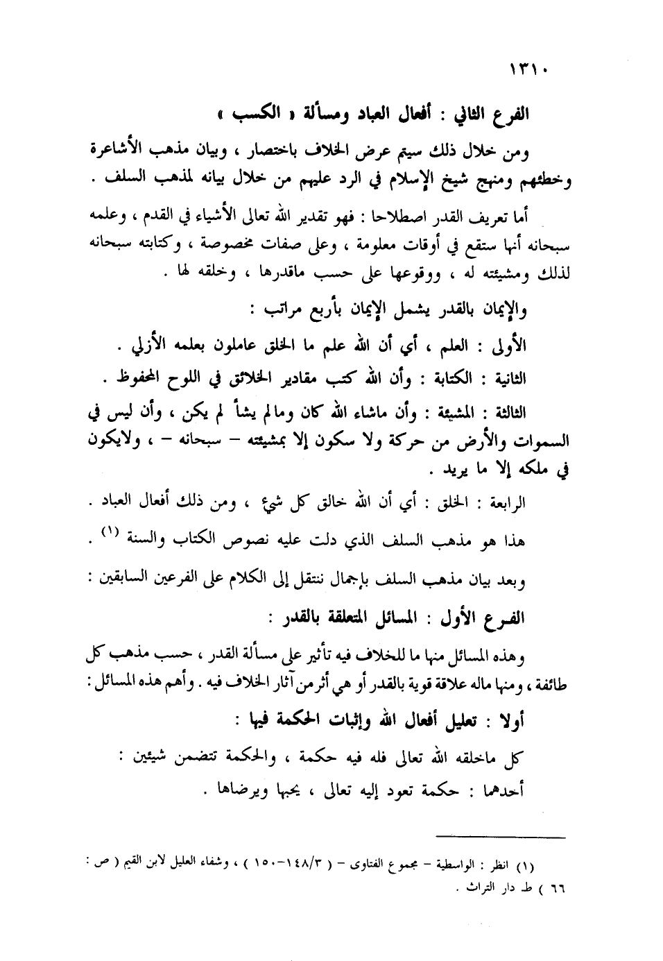 (¬1) انظر: الواسطية - مجموع الفتاوى - (3/148-150) ، وشفاء العليل لابن القيم (ص:66) ط دار التراث.