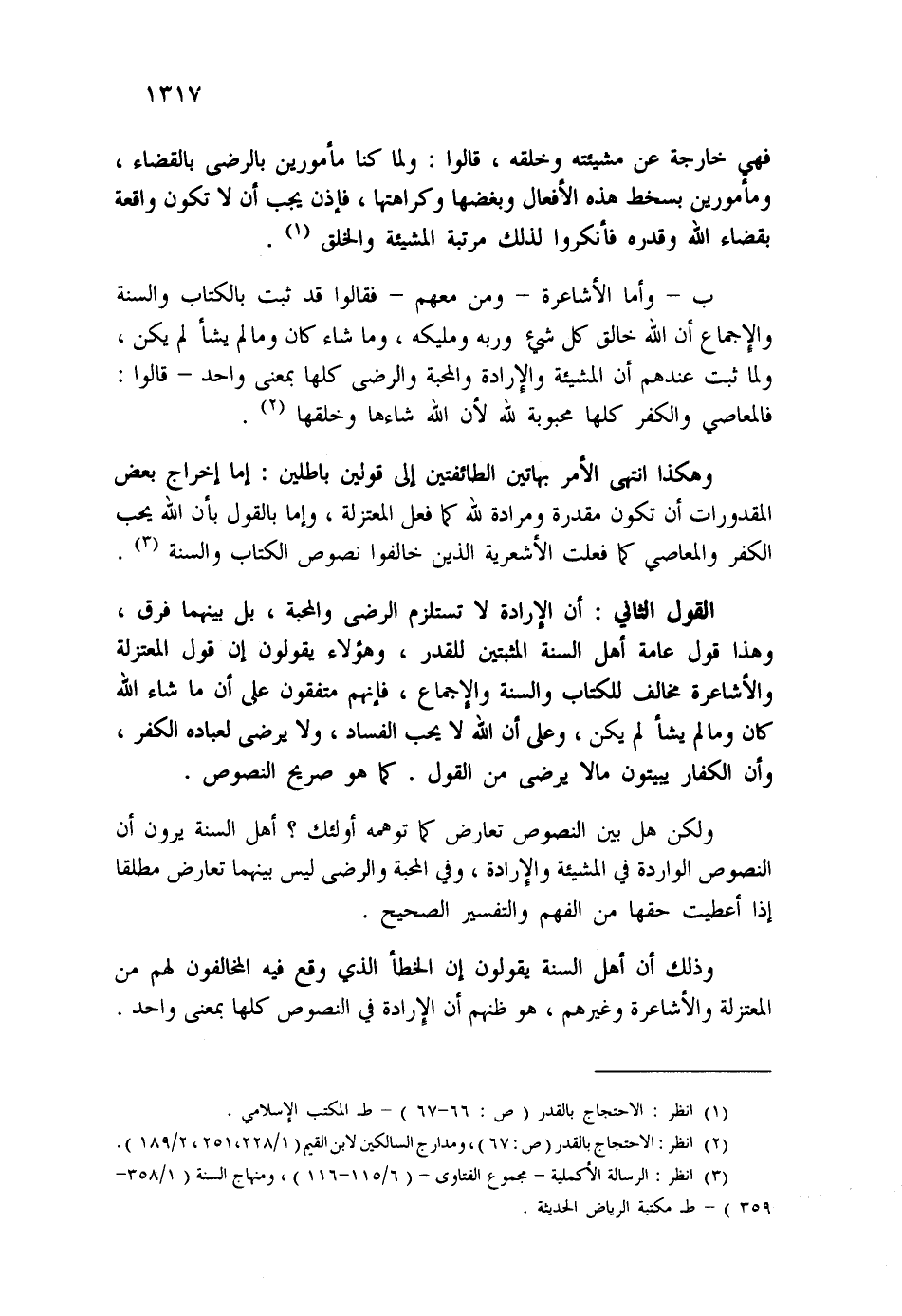 (¬1) انظر: الاحتجاج بالقدر (ص:67) ، ومدارج السالكين لابن القيم (1/228، 251، 2/189) .