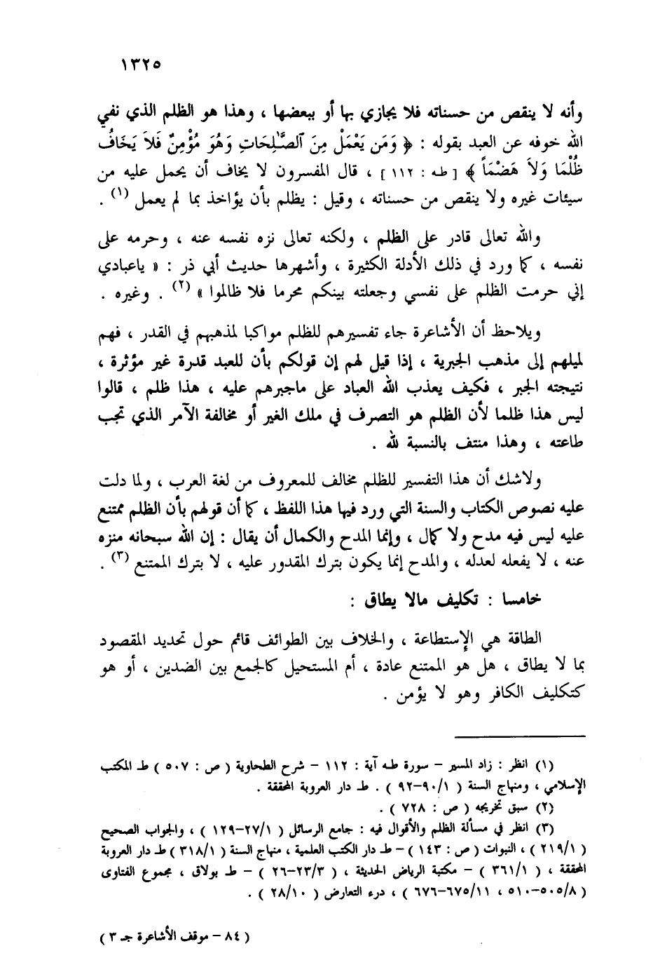 (¬1) انظر: زاد المسير - سورة ط آية: 112- شرحح الطحاوية (ص:50) ط المكتب الإسلامي، ومنهاج السنة (1/90-92) . ط دار العروبة المحققة.