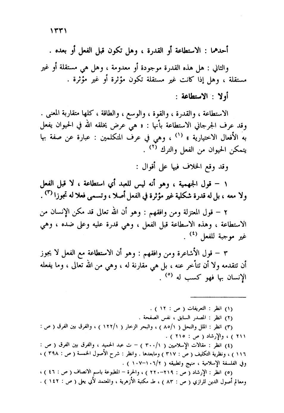 (¬4) انظر: مقالات الإسلاميين (1/300) - ت عبد الحميد، والفرق بين الفرق (ص:116) ، ونظرية التكليف (ص:317) ونما بعدها. وانظر: شرح الأصول الخمسة (ص:398) ، وفي الفلسفة الإسلامية، منهج وتطبيقه (2/106-107) .