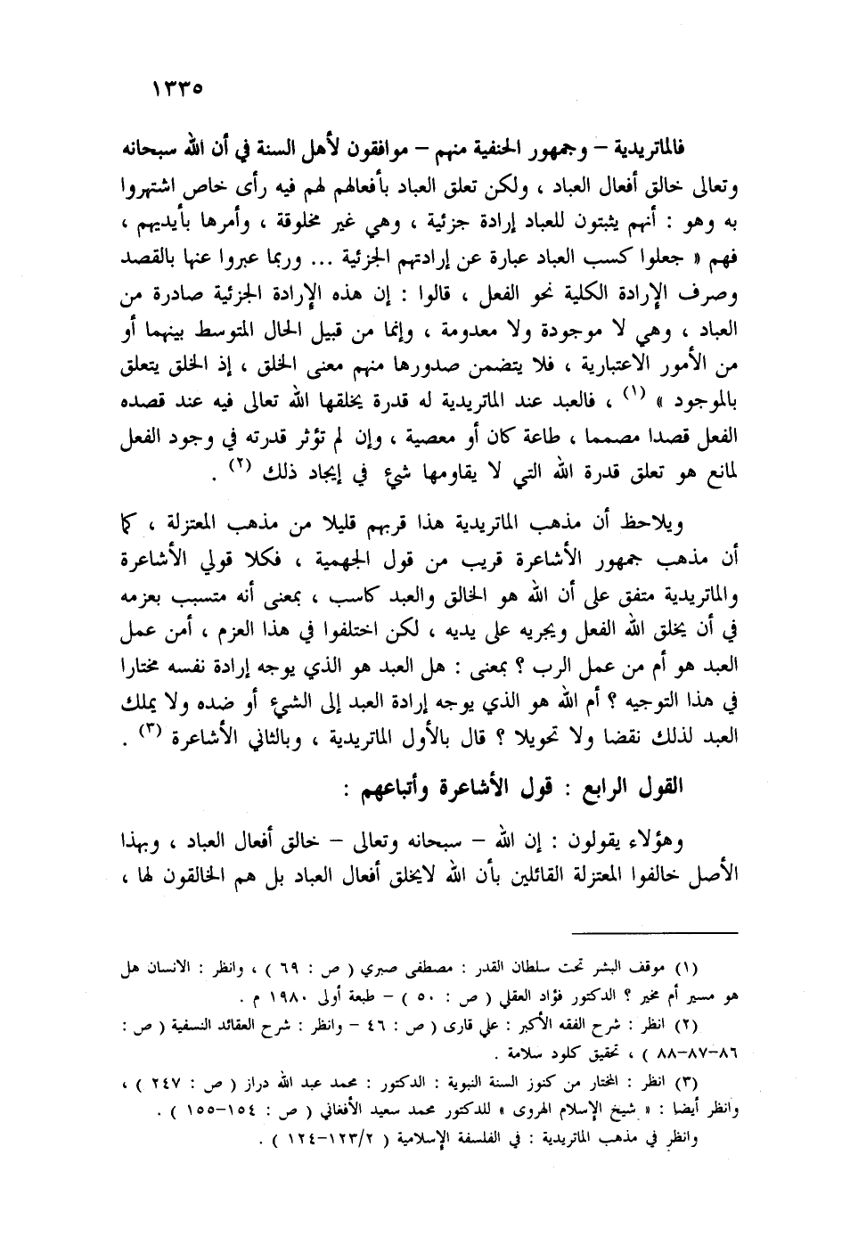 (¬2) انظر: شرح الفقه الأكبر: علي قاري (ص:46 - وانظر: شرح العقائد النسفية (ص:86-87-88) ، تحقيق كلود سلامة.