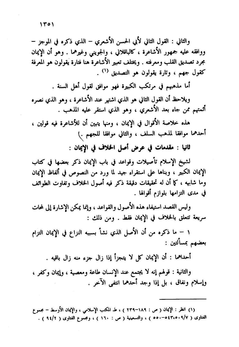 (¬1) انظر: الإيمان (ص:189-239) ، ط المكتب الإسلامي، والإيمان الأوسط - مجموع الفتاوى (7/509، 543-550) ، والتسعينية (ص:160) ، ومجموع الفتاوى (2/94) .