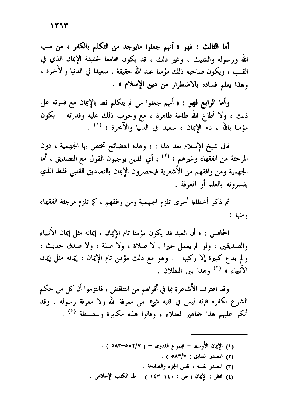 (¬4) انظر: الإيمان (ص:140-143) ط المكتب الإسلامي.