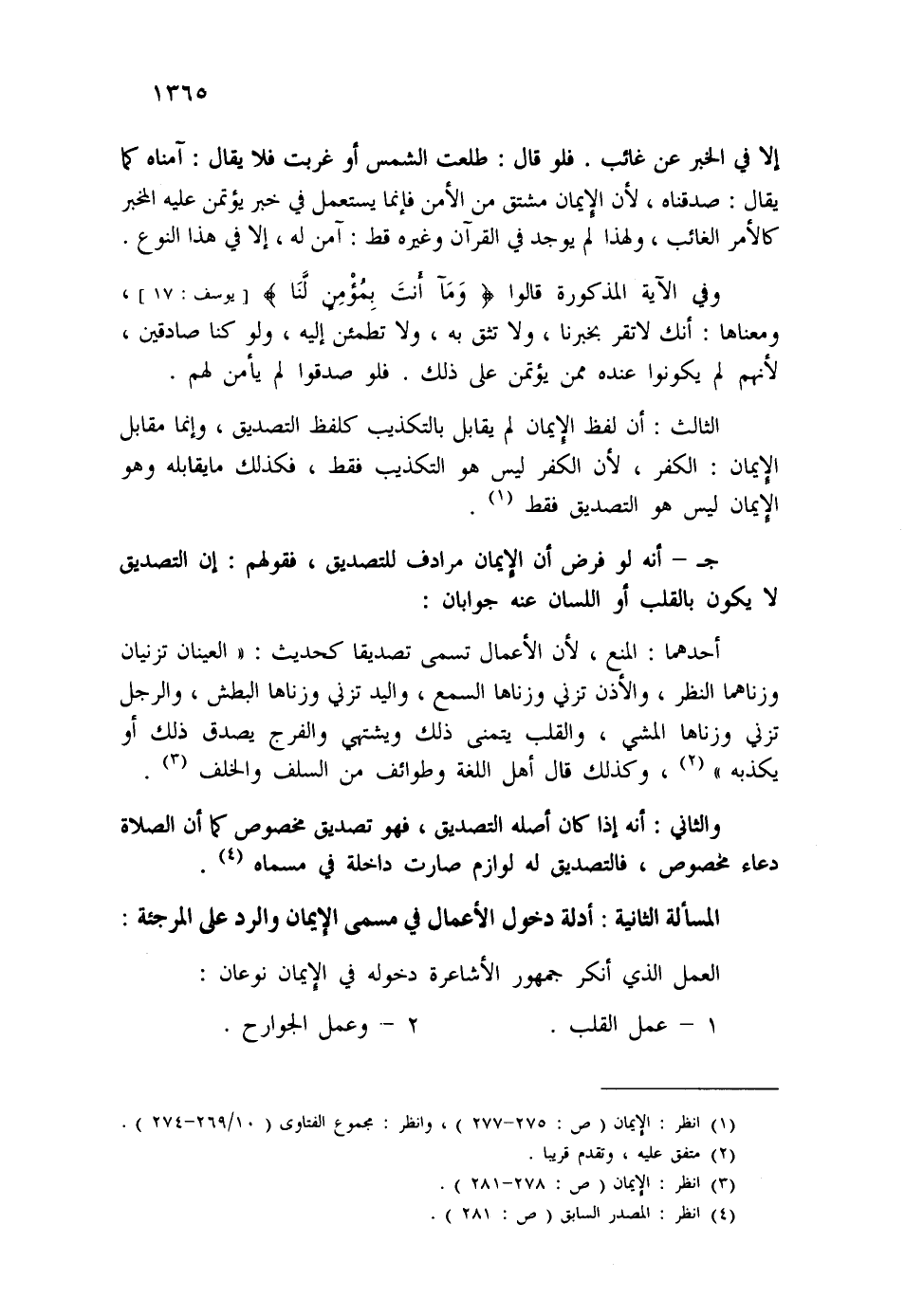 (¬1) انظر: الإيمان (ص: 275-277) ، وانظر: مجموع الفتاوى (10/269-274) .