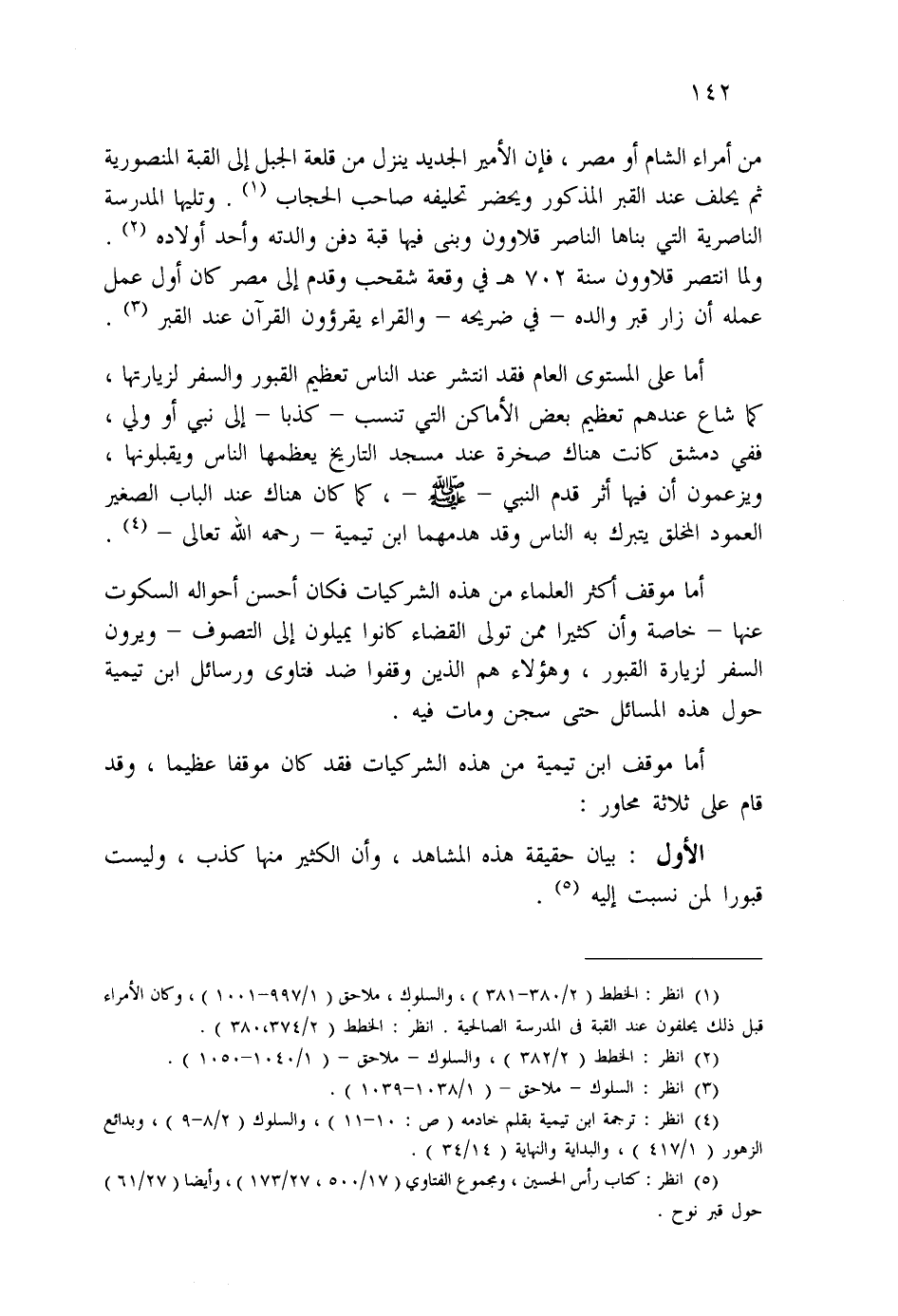 (¬5) انظر: كتاب رأس الحسين، ومجموع الفتاوى (17/ 0 0 5، 27/ 173) ، وأيضا (27/ 61) حول قبر نوح.
