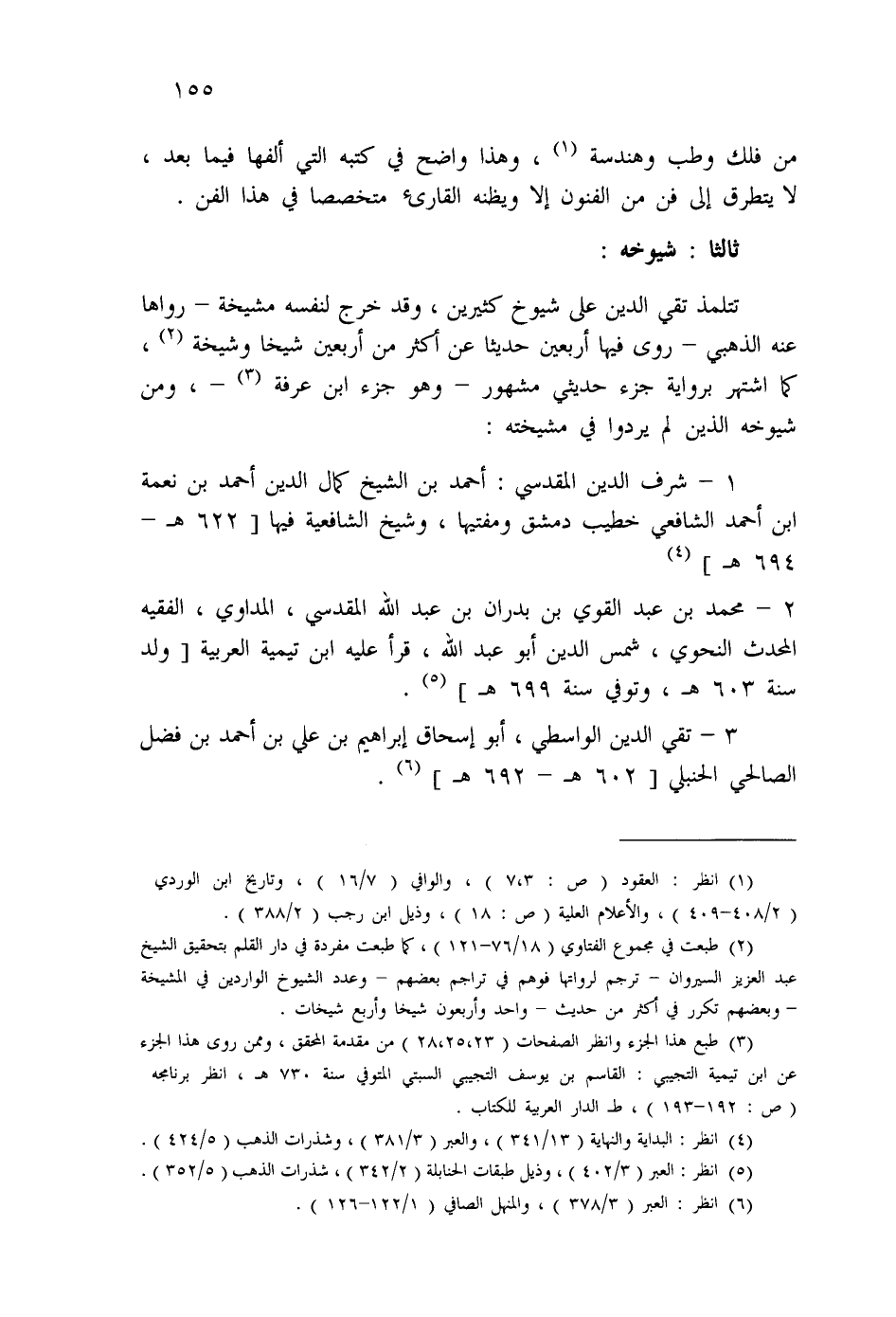 3- تقى الدين الواسطي، أبو إسحاق إبراهيم بن علي بن أحمد بن فضل الصالحي الحنبلى 1 602 هـ- 692 هـ، (¬6) .