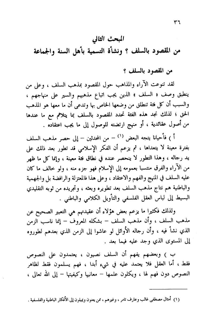 المبحث الثاني: من المقصود بالسلف؟ ونشأة التسمية بأهل السنة والجماعة