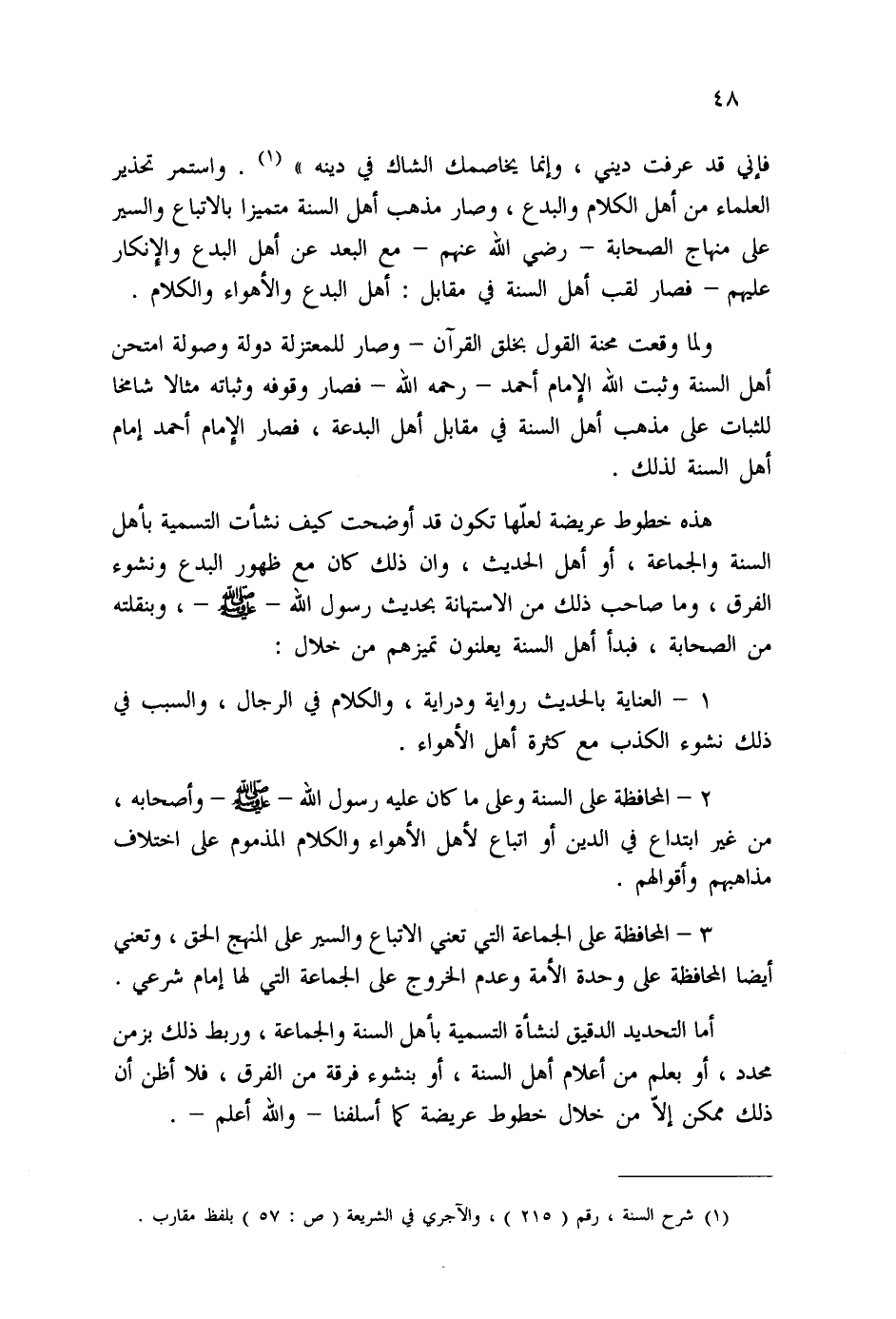 (¬1) شرح السنة، رقم (215) ، والآجري في الشريعة (ص: 57) بلفظ مقارب.