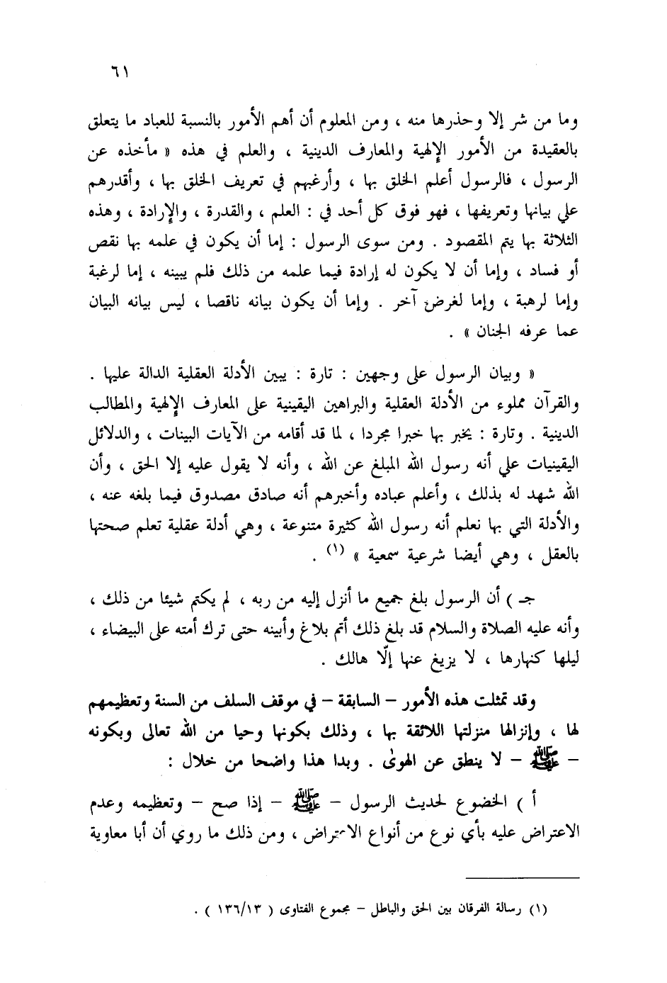 (¬1) رسالة الفرقان دين الحق والباطل- مجموع الفتاوى (13/136) .