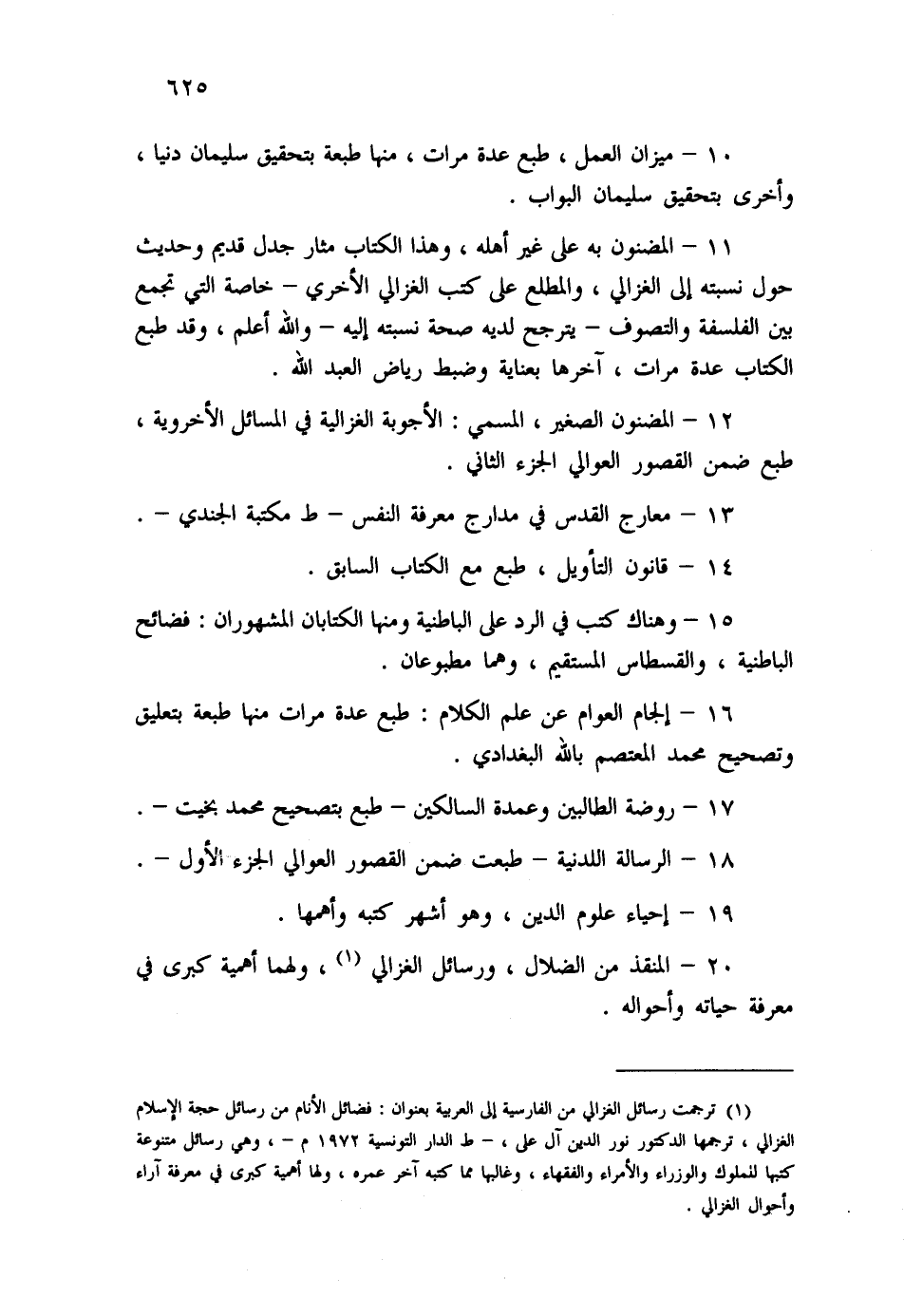20- المنقذ من الضلال، ورسائل الغزالي (¬1) ، ولها أهمية كبر في معرفة حياته وأحواله.