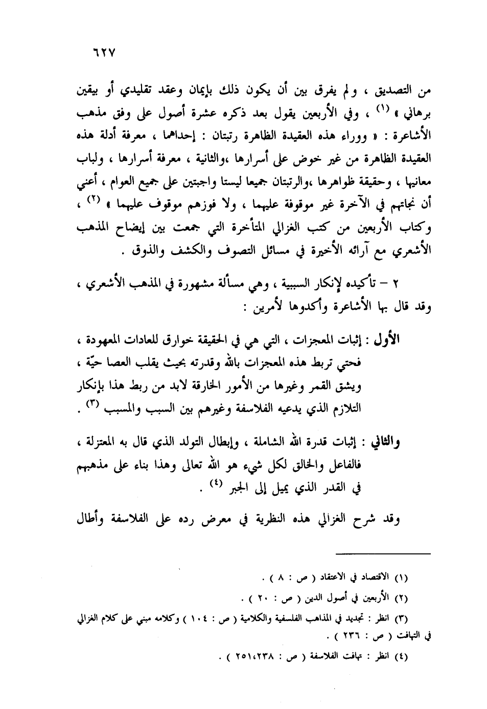 (¬3) انظر: تجديد في المذاهب الفلسفية والكلامية (ص: 104) ، وكلامه مبني على كلام الغزالي في التهافت (ص: 236) .