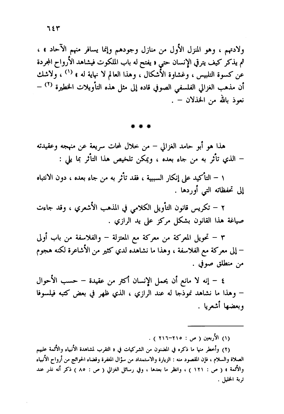 (¬2) وأخطر منها ما ذكره في المضنون من الشركيات في " التقرب لمشاهدة الأنبياء والأئمة عليهم الصلاة والسلام، فإن المقصود منه: الزيارة والاستمداد من سؤال المغفرة وقضاء الحوائج من أرواح الأنبياء والأئمة " (ص: 121) ، وانظر ما بعدها: وفي رسائل الغزالي (ص:85) ، ذكر أنه نذر عند تربة الخليل.
