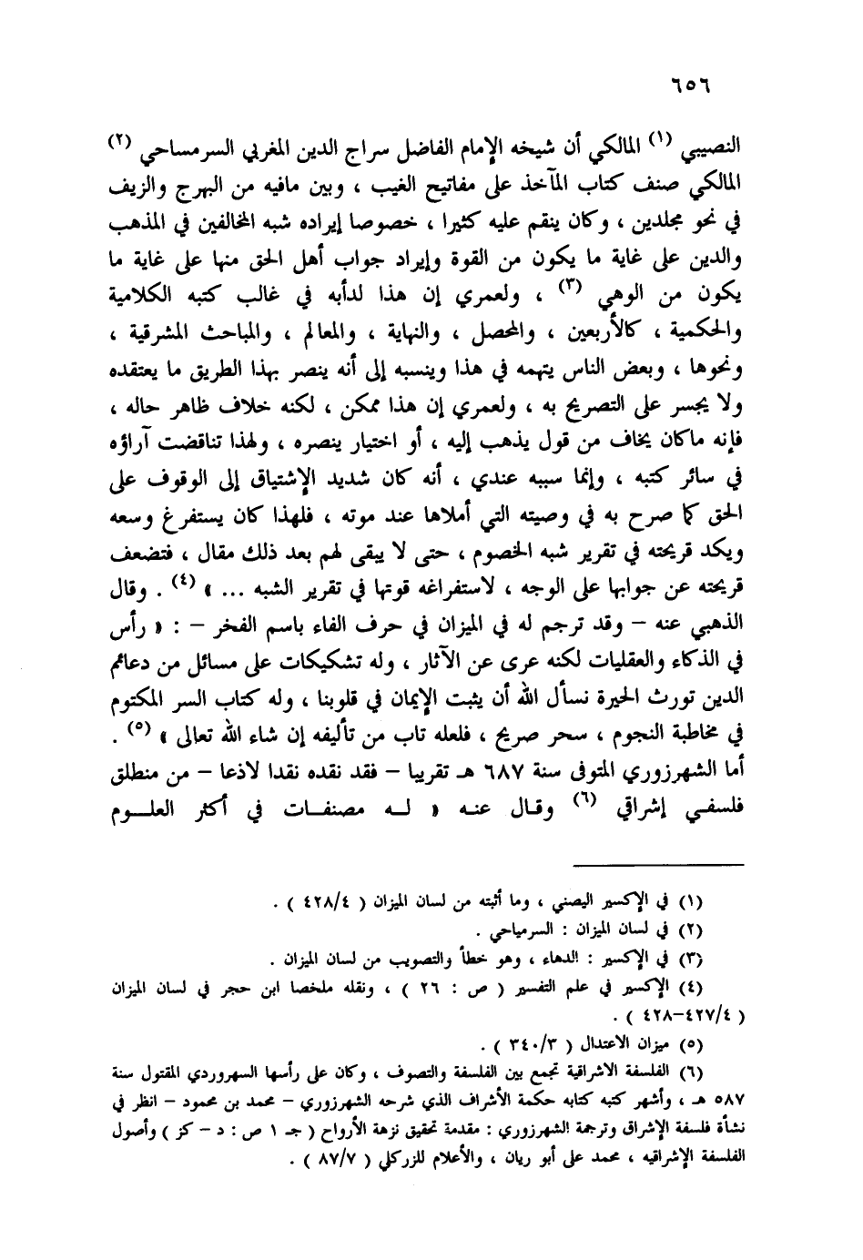 (¬6) الفلسفة الإشراقية تجمع بين الفلسفة والتصوف، وكان على رأسها السهروردي المقتول سنة 587هـ، وأشهر كتبه كتابه حكمة الأشراف الذي شرحه الشهرزوري - محمد بن محمود- انظر في نشأة فلسفة الإشراق وترجمة الشهرزوري، مقدمة تحقيق نزهة الأرواح (ج- 1ص: د- كز) وأصول الفلسفة الإشراقية، محمد على أبو ريان، والأعلام للزركلي (7/87) .