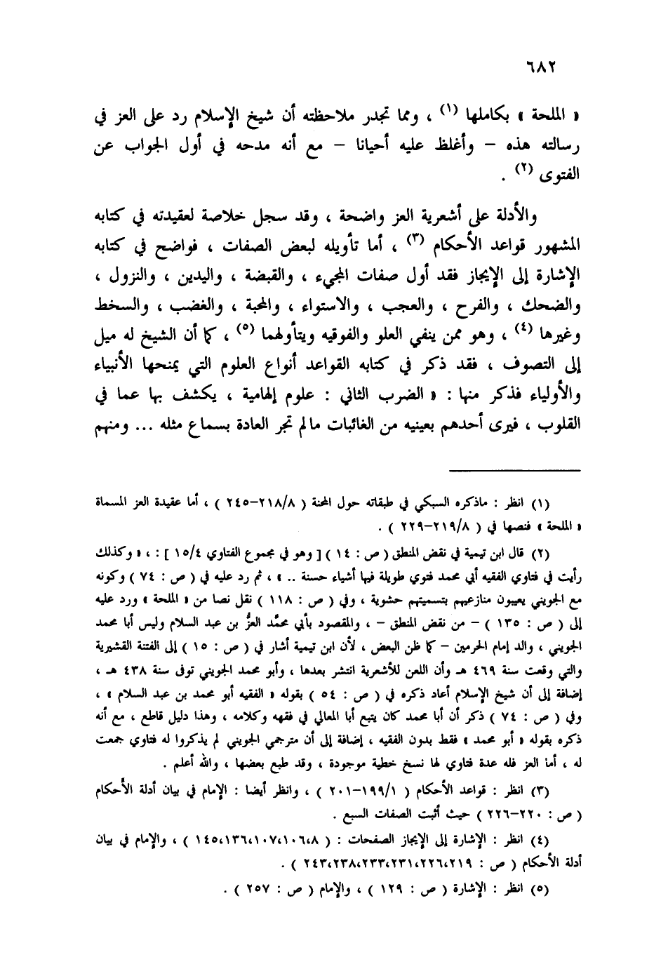 (¬1) انظر: ما ذكر السبكي في طبقاته حول المحنة (8/218-245) ، أما عقيدة العز المسماة " الملحة" فنصها في (8/219-229) .
