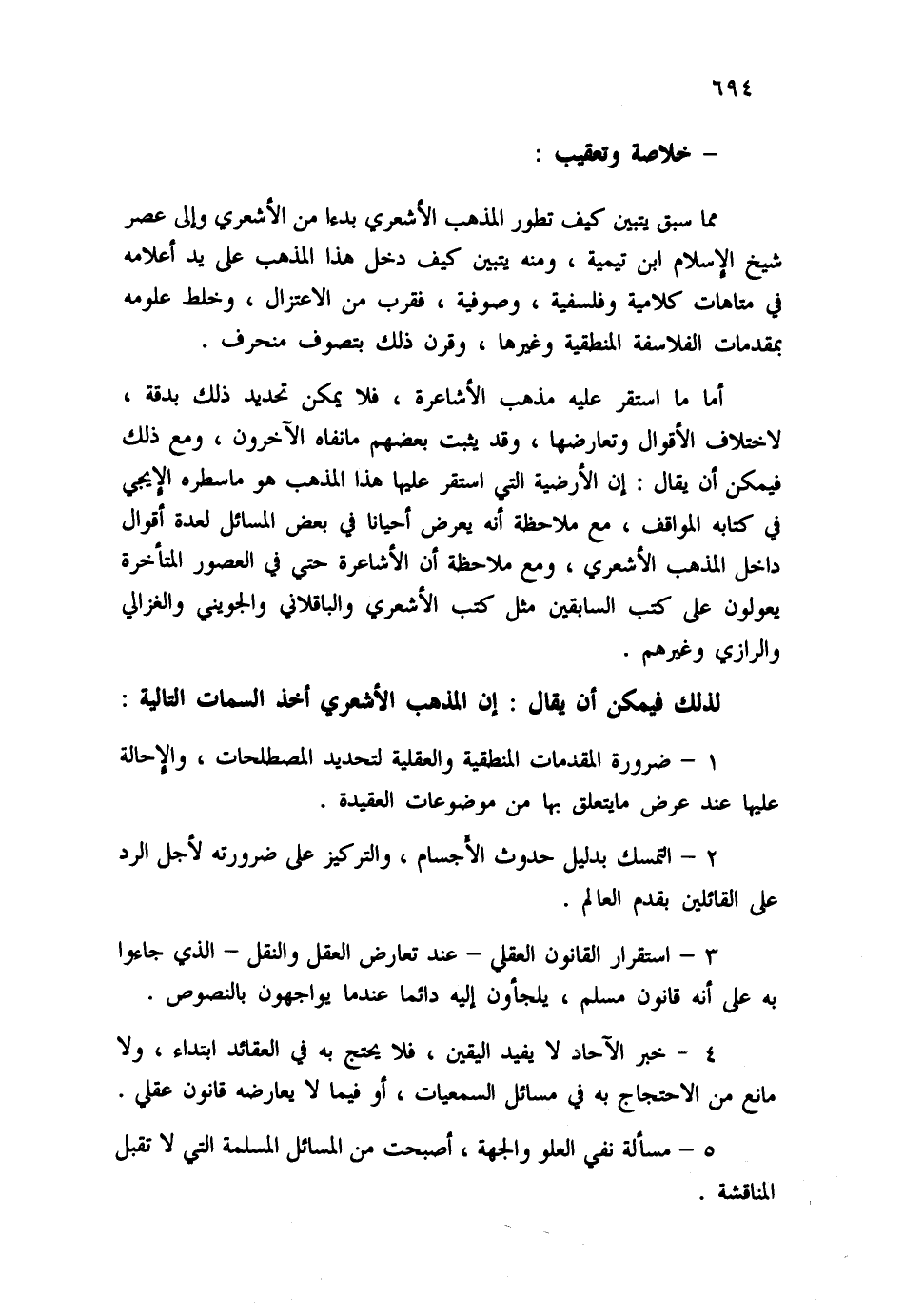 لذلك فيمكن أن يقال: إن المذهب الأشعري أخذ السمات التالية: