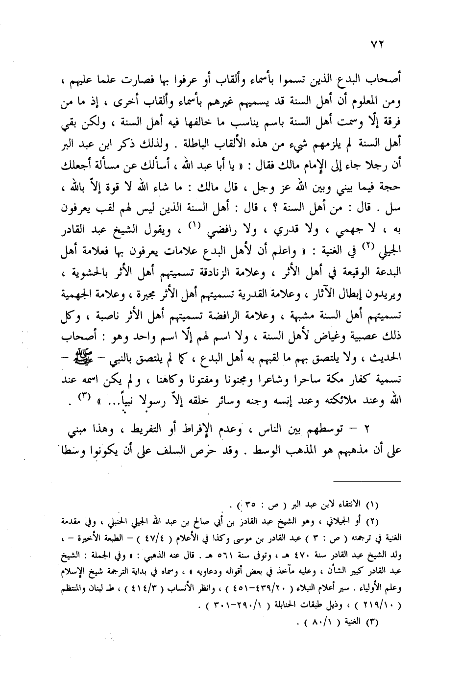 (¬2) أو الجيلاني، وهو الشيخ عبد القادر بن أبي صالح بن عبد الله الجيلي الحنبلي، وفي مقدمة الغنية في ترجمته (ص: 3) عبد القادر بن موسى وكذا في الأعلام (4/47) - الطبعة الأخيرة-، ولد الشيخ عبد القادر سنة 470 هـ، وتوفى سنة 561هـ. قال عنه الذهبى: " وفي الجملة: الشيخ عبد القادر كبير الشأن، وعليه مآخذ في بعض أقواله ودعاويه"، وسماه في بداية الترجمة شيخ الاسلام وعلم الأولياء. سير أعلام النبلاء (20/439- 451) ، وانظر الأنساب (3/414) ، ط لبنان والمنتظم (10/219) ، وذيل طبقات الحنابلة (1/290-301) ..