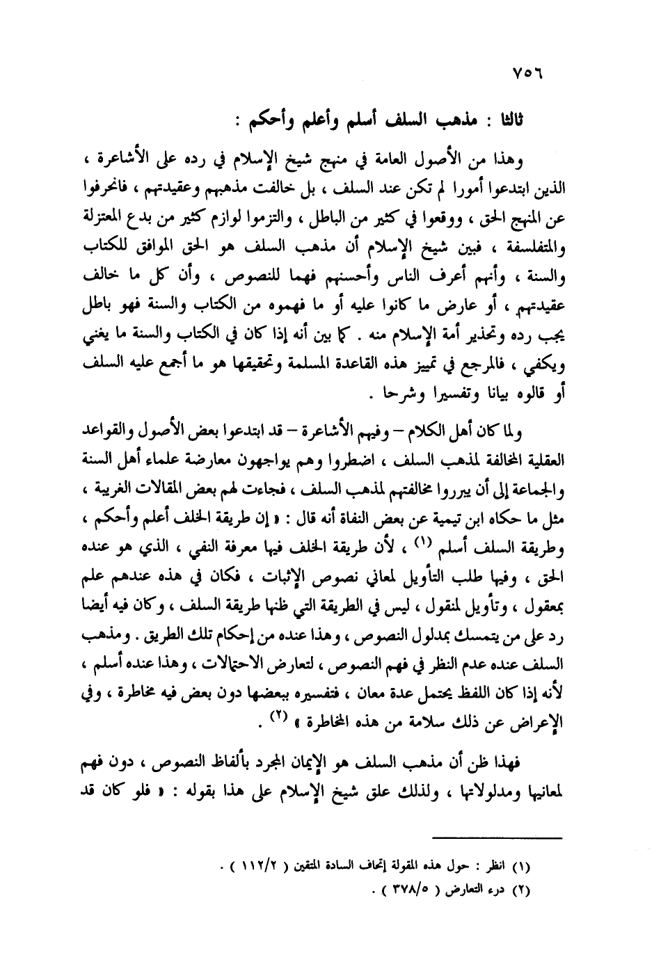 ثالثاً: مذهب السلف أسلم وأعلم وأحكم.