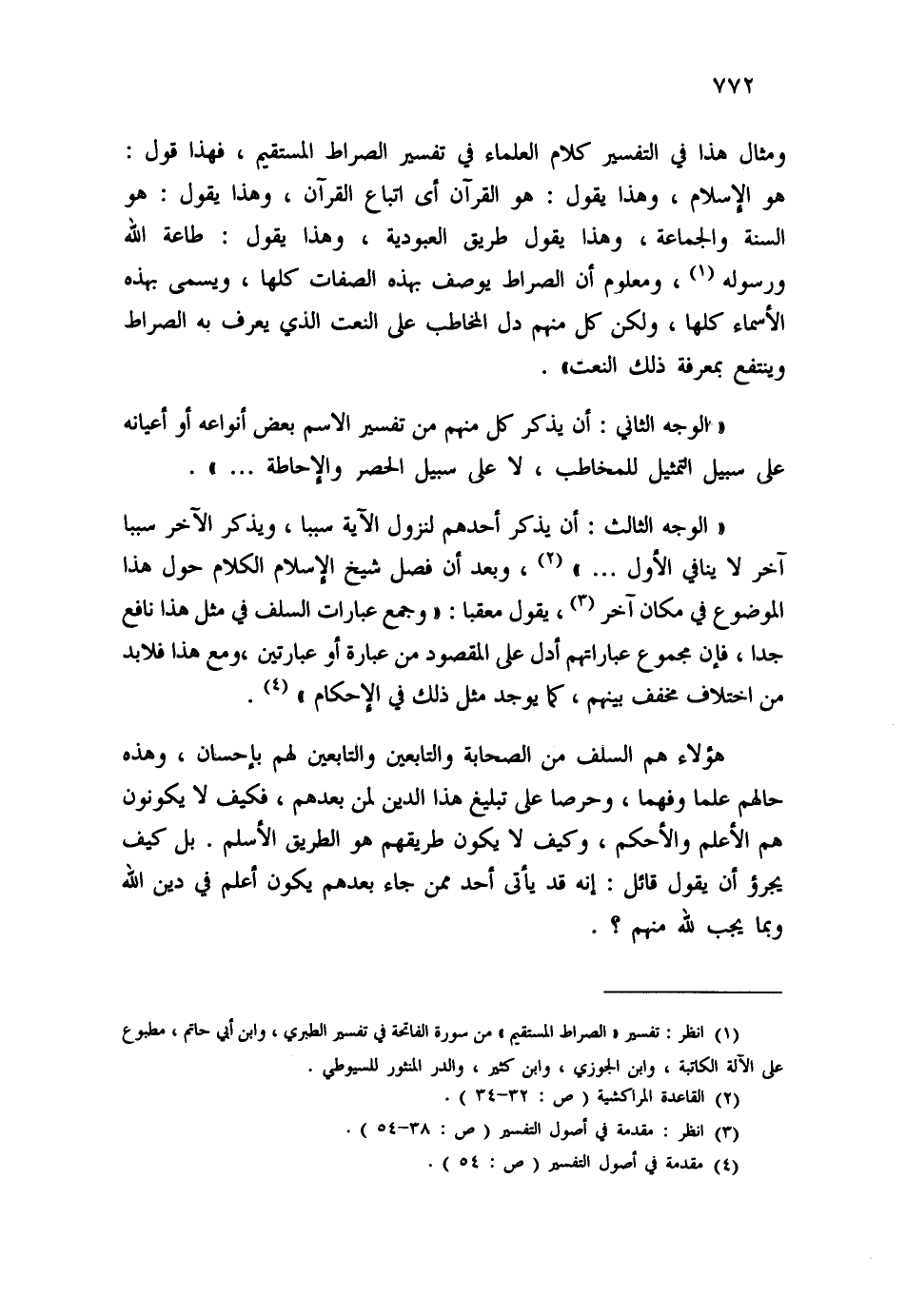 (¬1) انظر: تفسير " الصراط المستقيم " من سورة الفاتحة في تفسير الطبري، وابن أبي حاتم، مطبوع على الآلة الكاتبة، وابن الجوزي، وابن كثير، والدر المنثور للسيوطي.