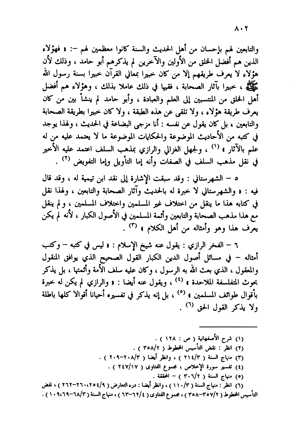 (¬6) انظر: منهاج السنة (3/110) ، وانظر أيضاً: درء التعارض (9/254، 260-262) ، نقض التأسيس المخطوط (2/357-358) ، مجموع الفتاوي (4/62-63) ، منهاج السنة (3/68-69،109) .