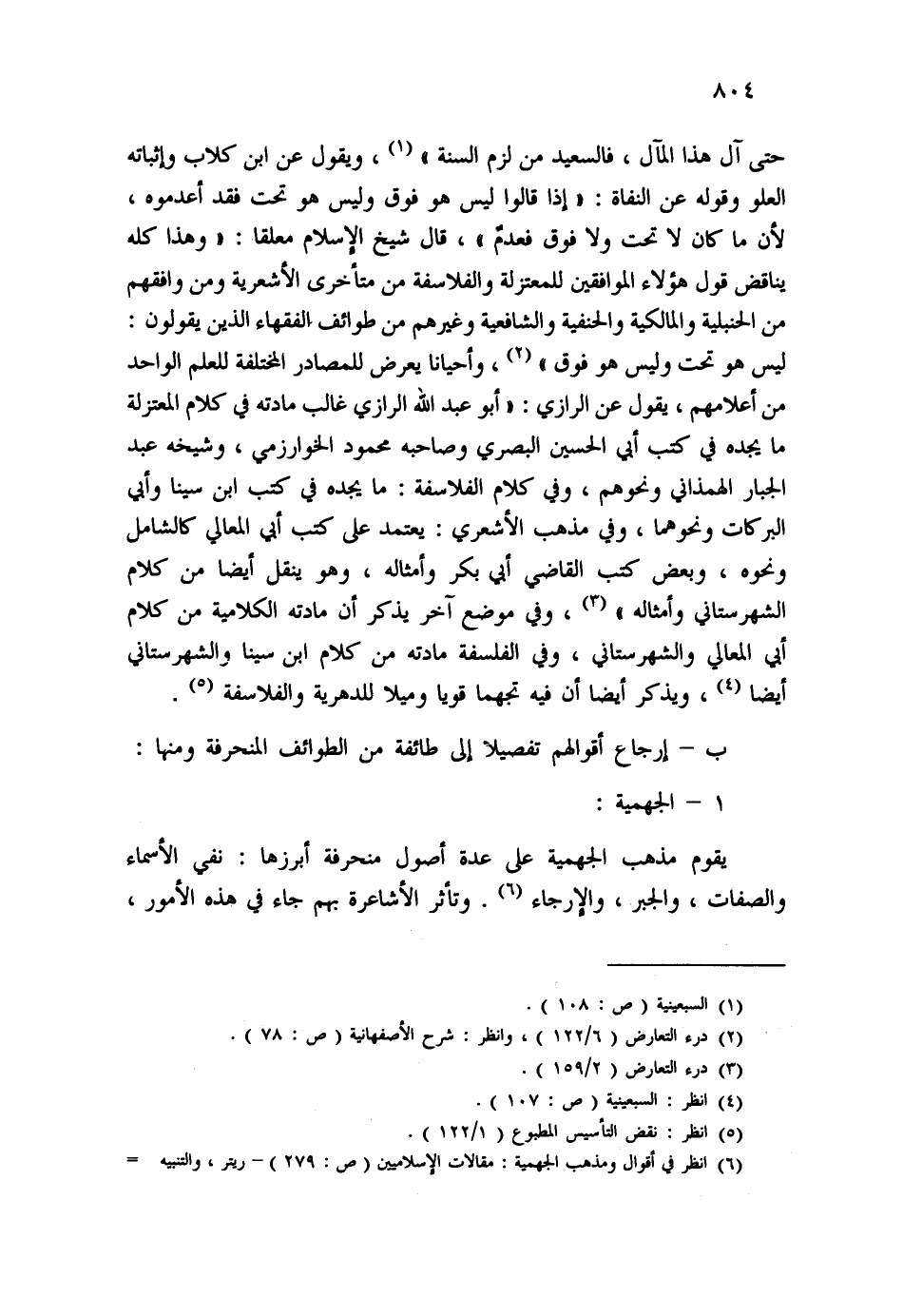 (¬6) انظر في أقوال ومذهب الجهمية: مقالات الإسلاميين (ص: 279) - ريتر، والتنبيه للملطي (ص:96) ، والفرق بين الفرق (ص: 211) ، والملل والنحل للبغدادي (ص: 145) ، وللشهرستاني (1/86) ، والتبصير بالدين للأسفراييني (ص: 96) ، واعتقادات فرق المسلمين والمشركين للرازي (ص: 68) ، النشار، والبرهان للسكسكي (ص: 17) ، والمنية والأمل (ص: 107) ، ت جواد مشكور، والفرق الإسلامية، ذيل شرح المواقف للكرماني (ص: 89) ، وغيرها.