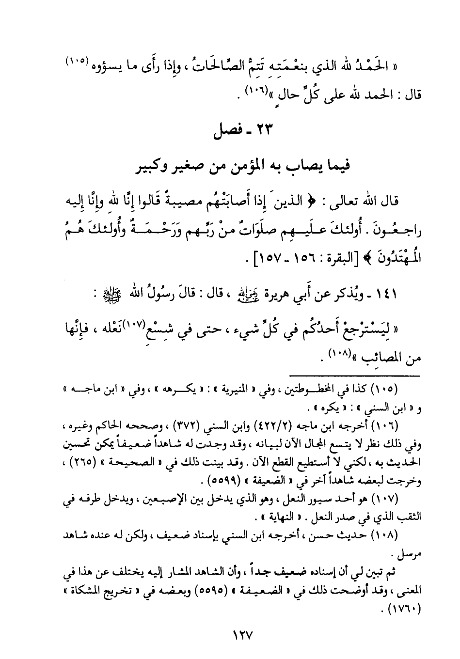 ليسترجع أحدكم في كل شيء حتى في شسع نعله فإنها من المصائب