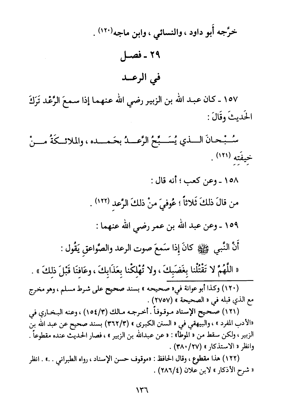 أن النبي صلى الله عليه وسلم كان إذا سمع صوت الرعد والصواعق يقول: