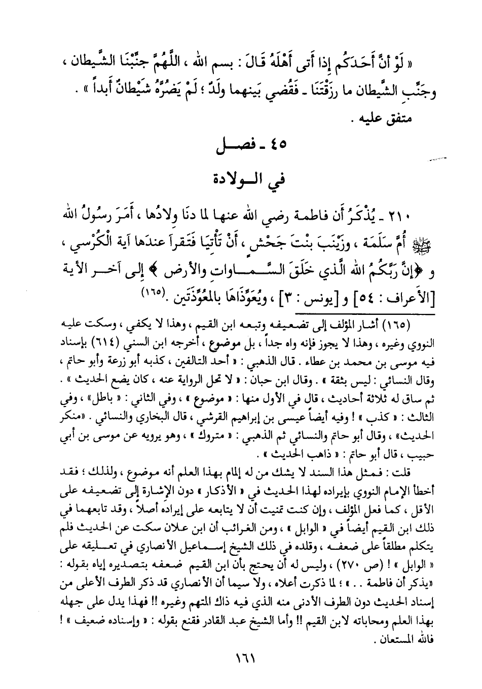 210 - (موضوع) يذكر أن فاطمة Bها لما دنا ولادها أمر رسول الله A أم سلمة وزينب بنت جحش أن تأتيا فتقرآ عندها آية الكرسي و (إن ربكم الله الذي خلق السماوات والأرض) إلى آخر الآية [الأعراف: 54] و [يونس: 3] ويعوذاها بالمعوذتين