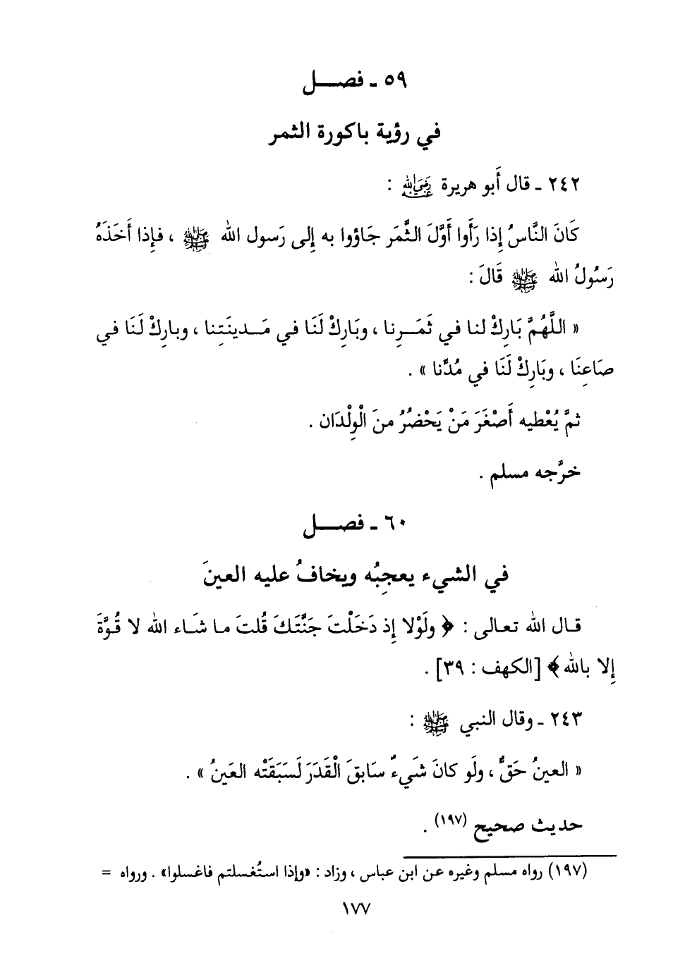 إذا رأى أحدكم ما يعجبه في نفسه أو ماله فليبرك عليه فإن العين حق