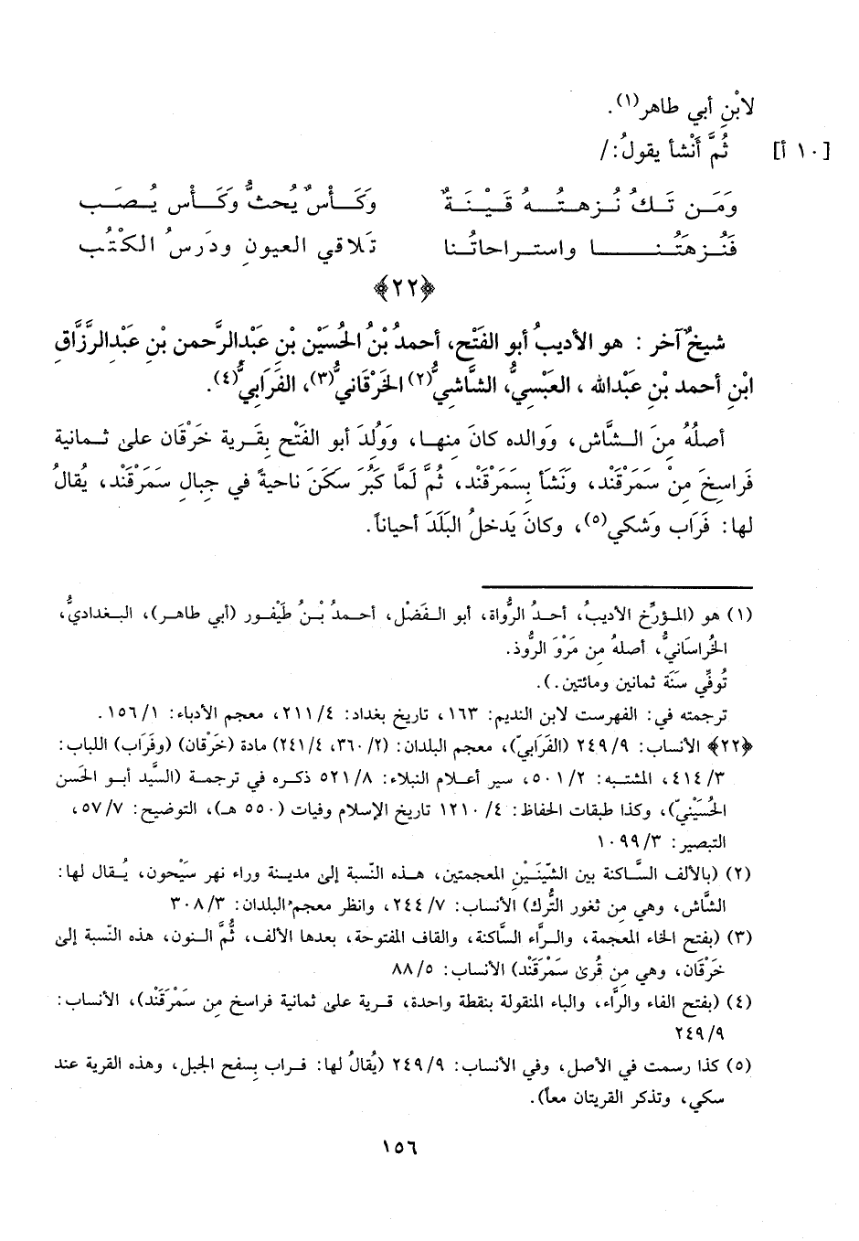 شيخ آخر: هو الأديب أبو الفتح أحمد بن الحسين بن عبد الرحمن بن عبد الرزاق بن أحمد بن عبد الله العبسي الشاشي الخرقاني الفرابي.