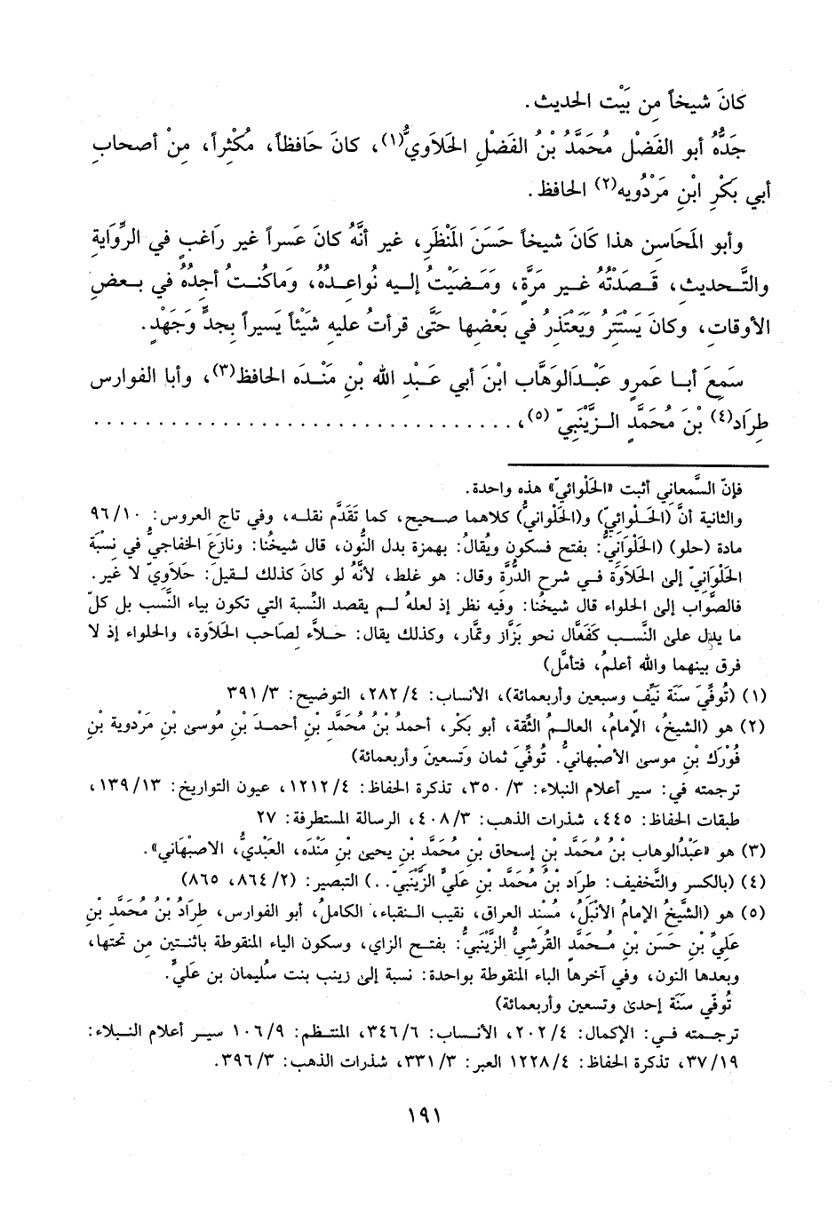 جده أبو الفضل محمد بن الفضل الحلاوي، كان حافظا، مكثرا، من أصحاب أبي بكر بن مردويه الحافظ.