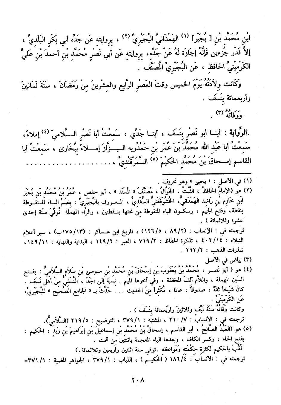 أبنا أبو نصر بنسف، أبنا جدي، سمعت أبا نصر السلامي إملاء، سمعت أبا عبد الله محمد بن عمر بن حمدويه البزاز إملاء ببخارى، سمعت أبا القاسم إسحاق بن محمد الحكيم السمرقندي،. . . . . . . . . . . .،