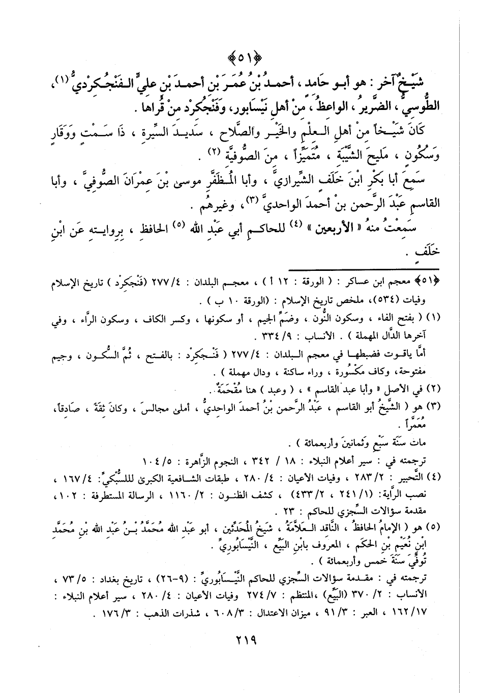شيخ آخر: هو أبو حامد أحمد بن عمر بن أحمد بن علي الفنجكردي الطوسي الضرير الواعظ، من أهل نيسابور، وفنجكرد من قراها.