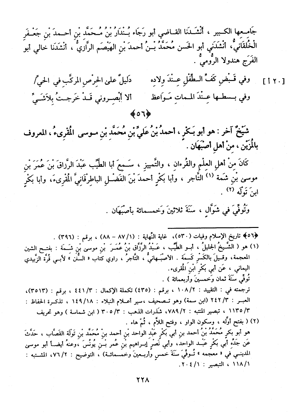 شيخ آخر: هو أبو بكر أحمد بن علي بن محمد بن موسى المقرئ، المعروف بالمزين، من أهل أصبهان.