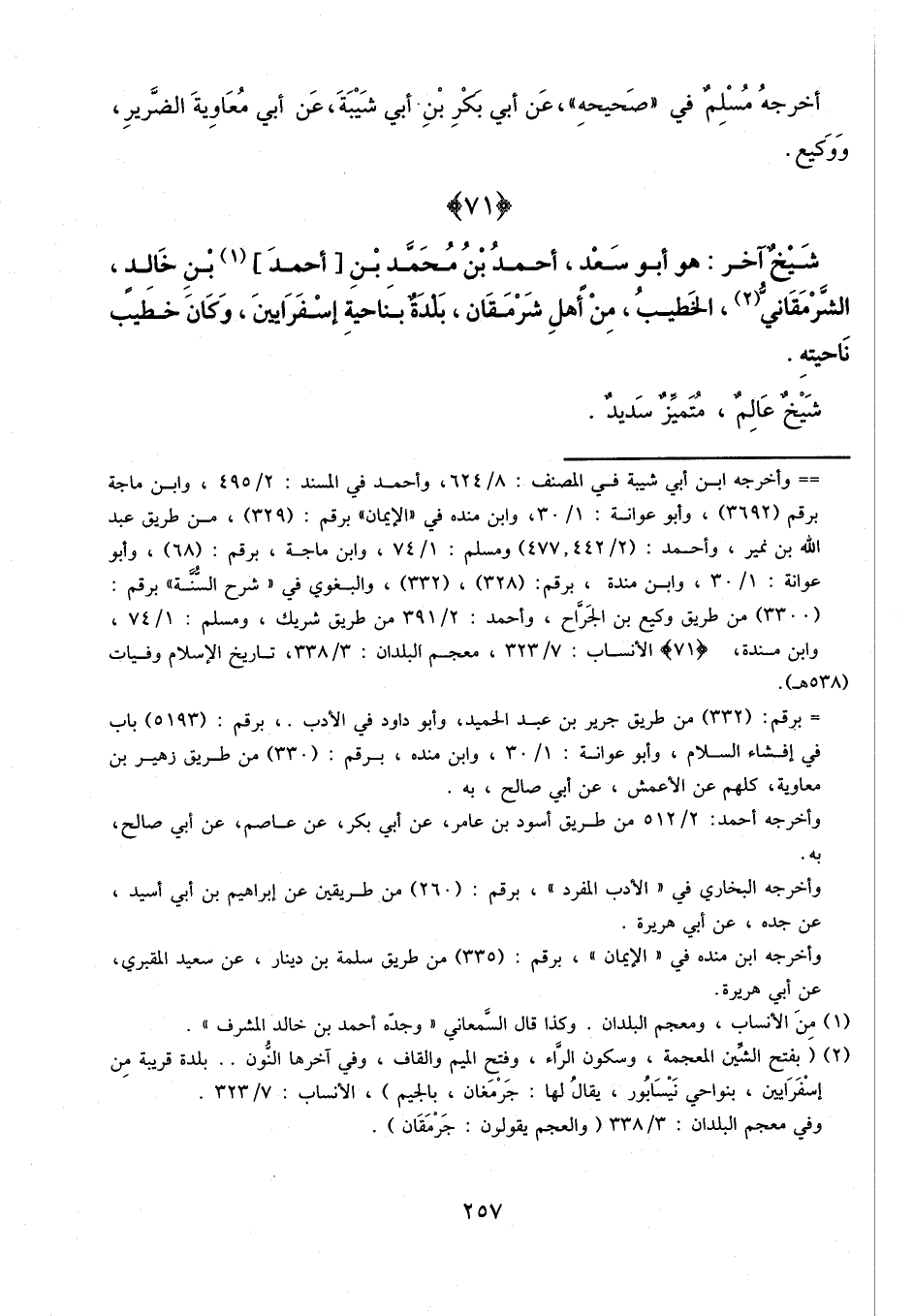 شيخ آخر: هو أبو سعد أحمد بن محمد بن أحمد بن خالد الشرمقاني الخطيب، من أهل شرمقان، بلدة بناحية إسفرايين، وكان خطيب ناحيته.