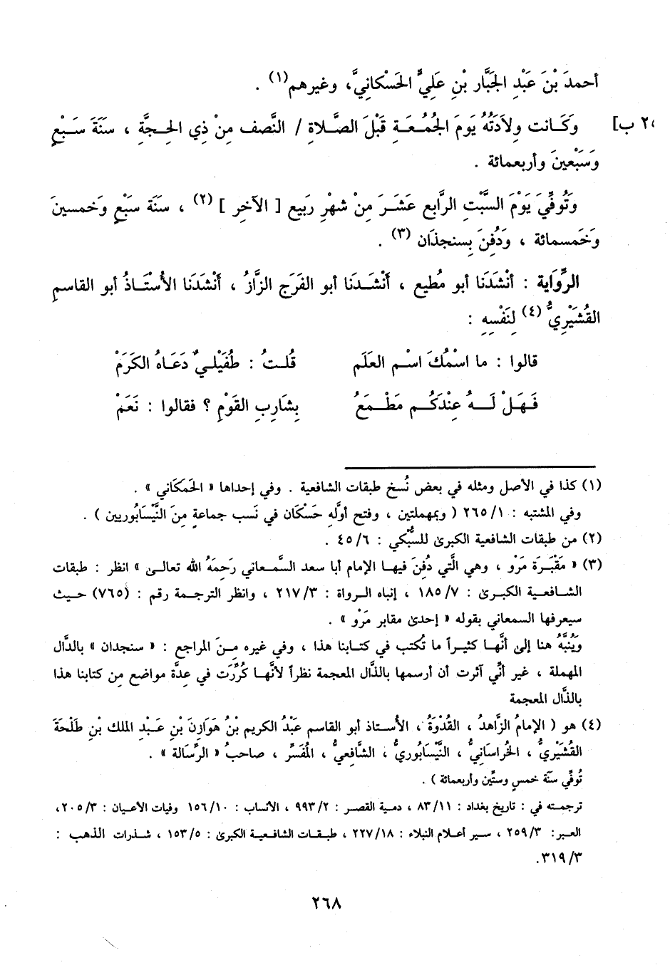 أنشدنا أبو مطيع، أنشدنا أبو الفرج الزاز، أنشدنا الأستاذ أبو القاسم القشيري لنفسه: