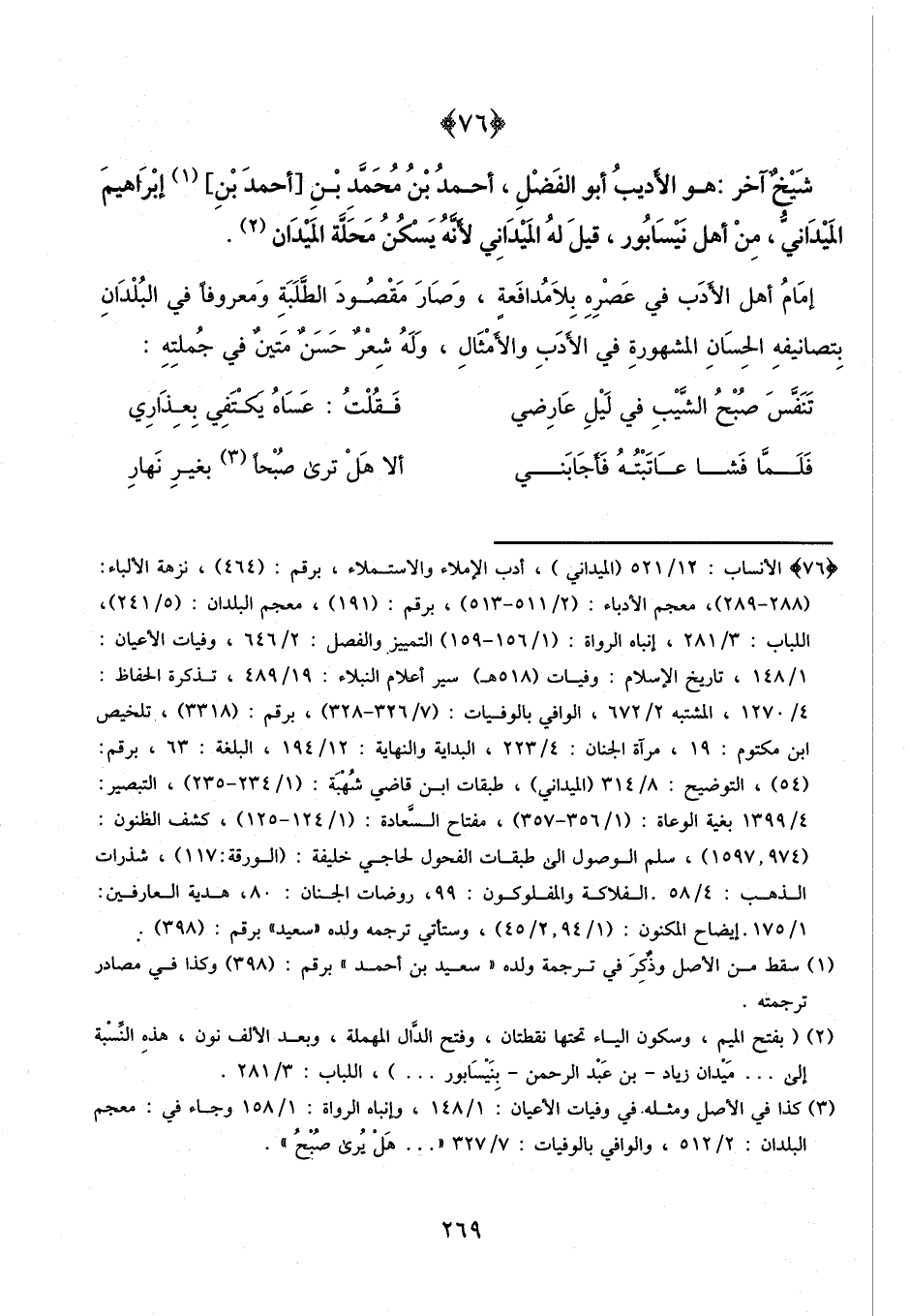 شيخ آخر: هو الأديب أبو الفضل أحمد بن محمد بن أحمد بن إبراهيم الميداني، من أهل نيسابور، قيل له: الميداني؛ لأنه يسكن محلة الميدان.