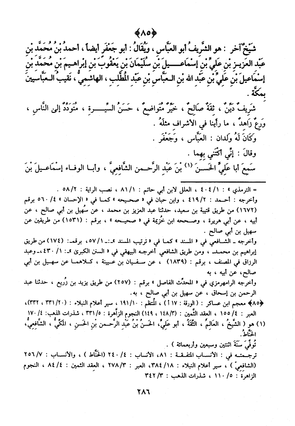 شيخ آخر: هو الشريف أبو العباس، ويقال: أبو جعفر أيضا، أحمد بن محمد بن عبد العزيز بن علي بن إسماعيل بن سليمان بن يعقوب بن إبراهيم بن محمد بن إسماعيل بن علي بن عبد الله بن العباس بن عبد المطلب الهاشمي، نقيب العباسيين بمكة.