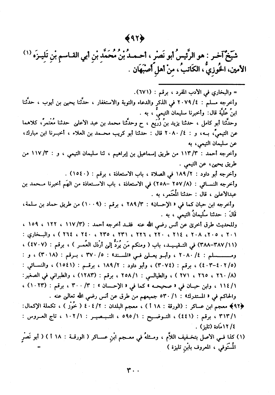 شيخ آخر: هو الرئيس أبو نصر أحمد بن محمد بن أبي القاسم بن تليزه الأمين الخوزي الكاتب، من أهل أصبهان.