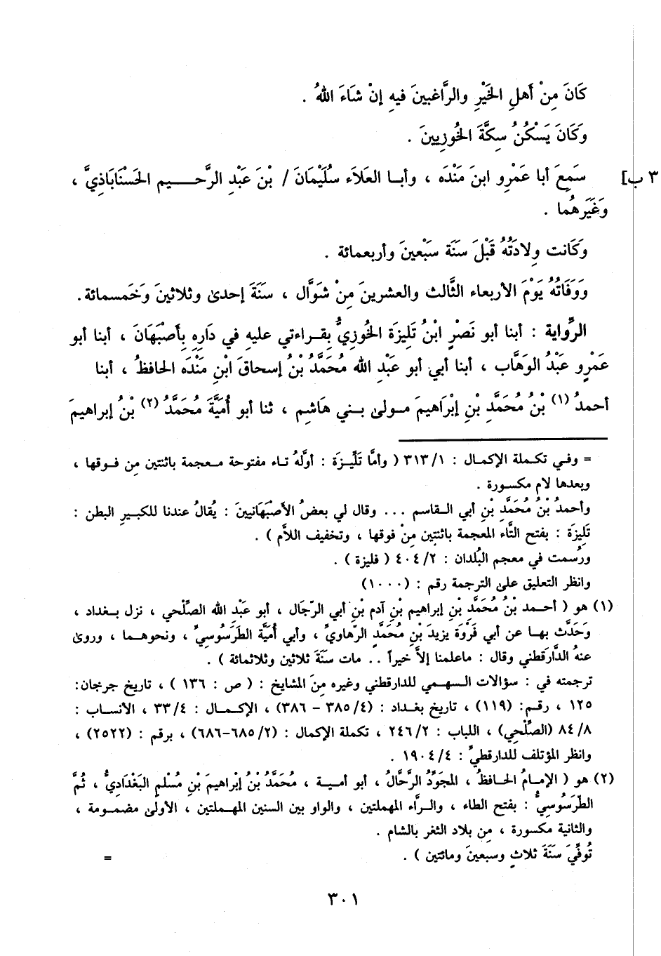 أبنا أَبُو نَصْرِ بْنُ تَلِّيزَةَ الْخَوْزِيُّ، بِقِرَاءَتِي عَلَيْهِ فِي دَارِهِ بِأَصْبَهَانَ، أَبْنَا أَبُو عَمْرٍو عَبْدُ الْوَهَّابِ، أبنا أَبِي أَبُو عَبْدِ اللَّهِ مُحَمَّدُ بْنُ إِسْحَاقَ بْنِ مَنْدَهْ الْحَافِظُ، أبنا أَحْمَدُ بْنُ مُحَمَّدِ بْنِ إِبْرَاهِيمَ، مَوْلَى بَنِي هَاشِمٍ، ثنا أَبُو أُمَيَّةَ مُحَمَّدُ بْنُ إِبْرَاهِيمَ