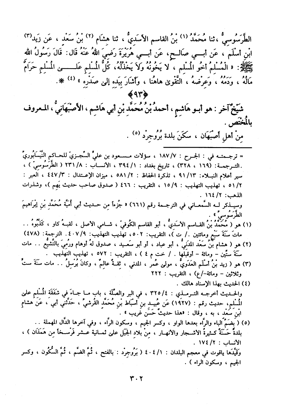 الطَّرَسُوسِيُّ، ثنا مُحَمَّدُ بْنُ الْقَاسِمِ الأَسَدِيُّ، ثنا هِشَامِ بْنِ سَعْدٍ، عَنْ زَيْدِ بْنِ أَسْلَمَ، عَنْ أَبِي صَالِحٍ، عَنْ أَبِي هُرَيْرَةَ، رَضِيَ اللَّهُ عَنْهُ، قَالَ: قَالَ رَسُولُ اللَّهِ، صَلَّى اللَّهُ عَلَيْهِ وَسَلَّمَ: «الْمُسْلِمُ أَخُو الْمُسْلِمِ، لا يَخُونُهُ وَلا يَخْذُلُهُ، كُلُّ الْمُسْلِمِ عَلَى الْمُسْلِمِ حَرَامٌ، مَالُهُ وَدَمُهُ وعِرْضُهُ، التَّقْوَى هَهُنَا، وَأَشَارَ بِيَدِهِ إِلَى صَدْرِهِ»